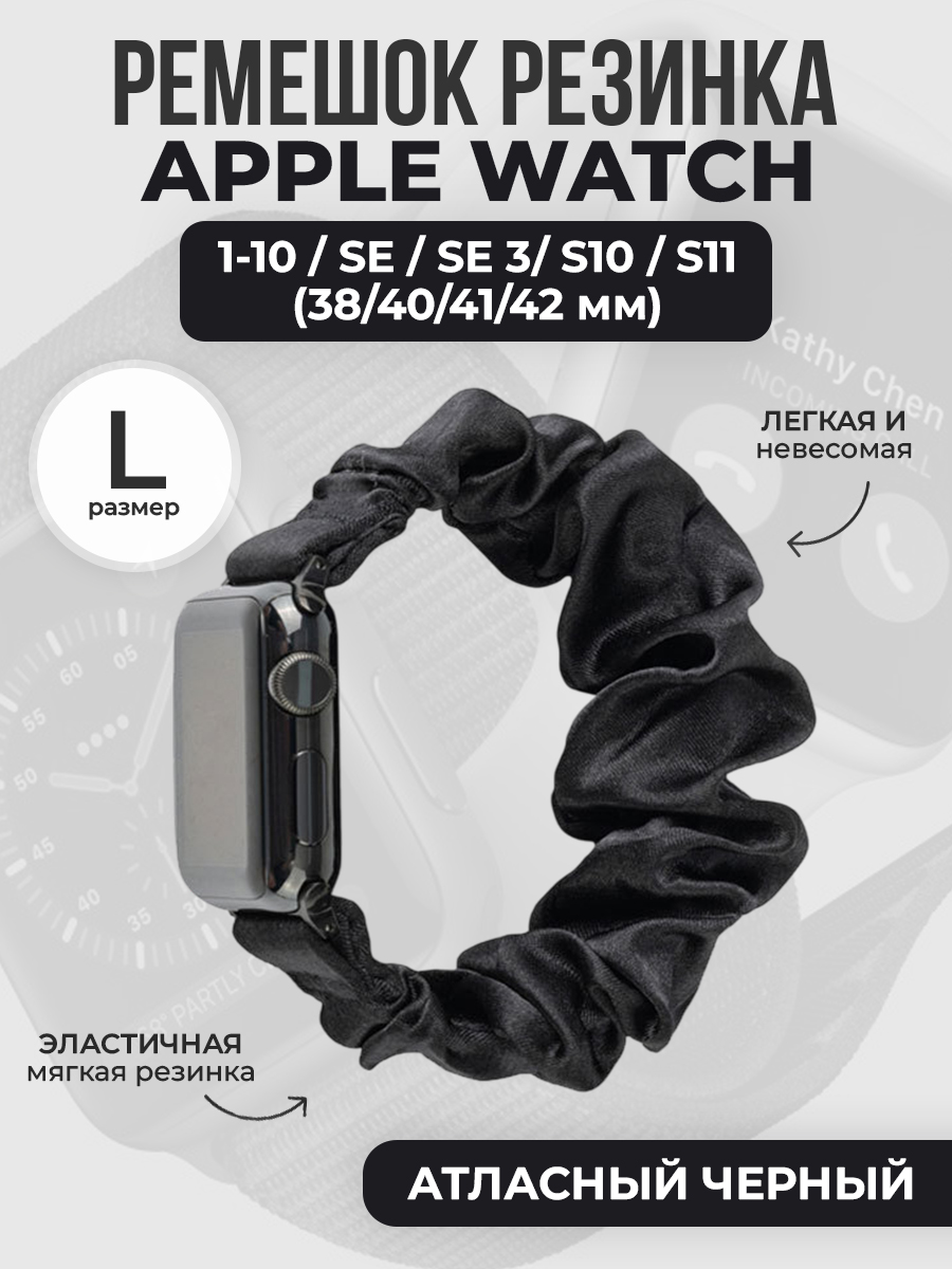Ремешок резинка для Apple Watch 1-9 / SE (38/40/41мм) / S10 (42мм), размер L, атласный черный