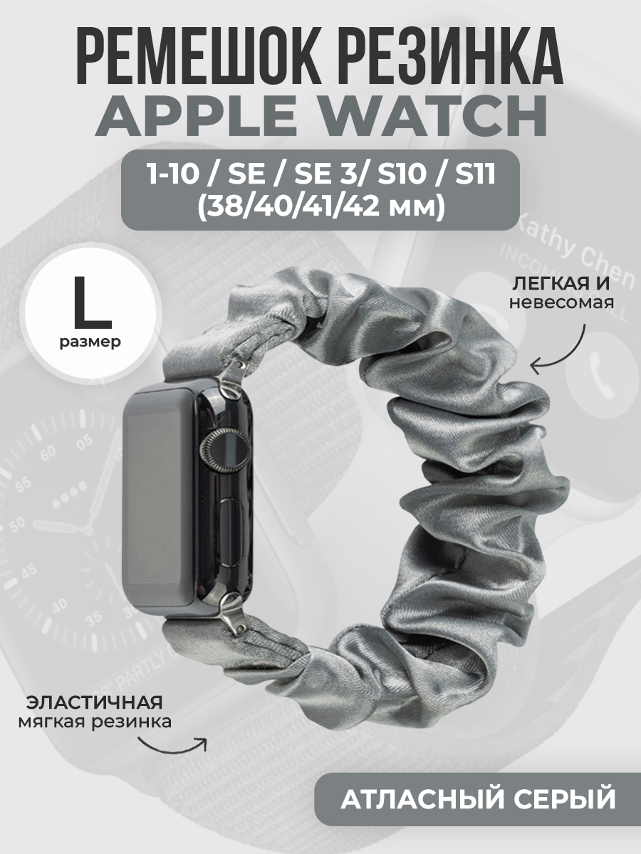 Ремешок резинка для Apple Watch 1-9 / SE (38/40/41мм) / S10 (42мм), размер L, атласный серый