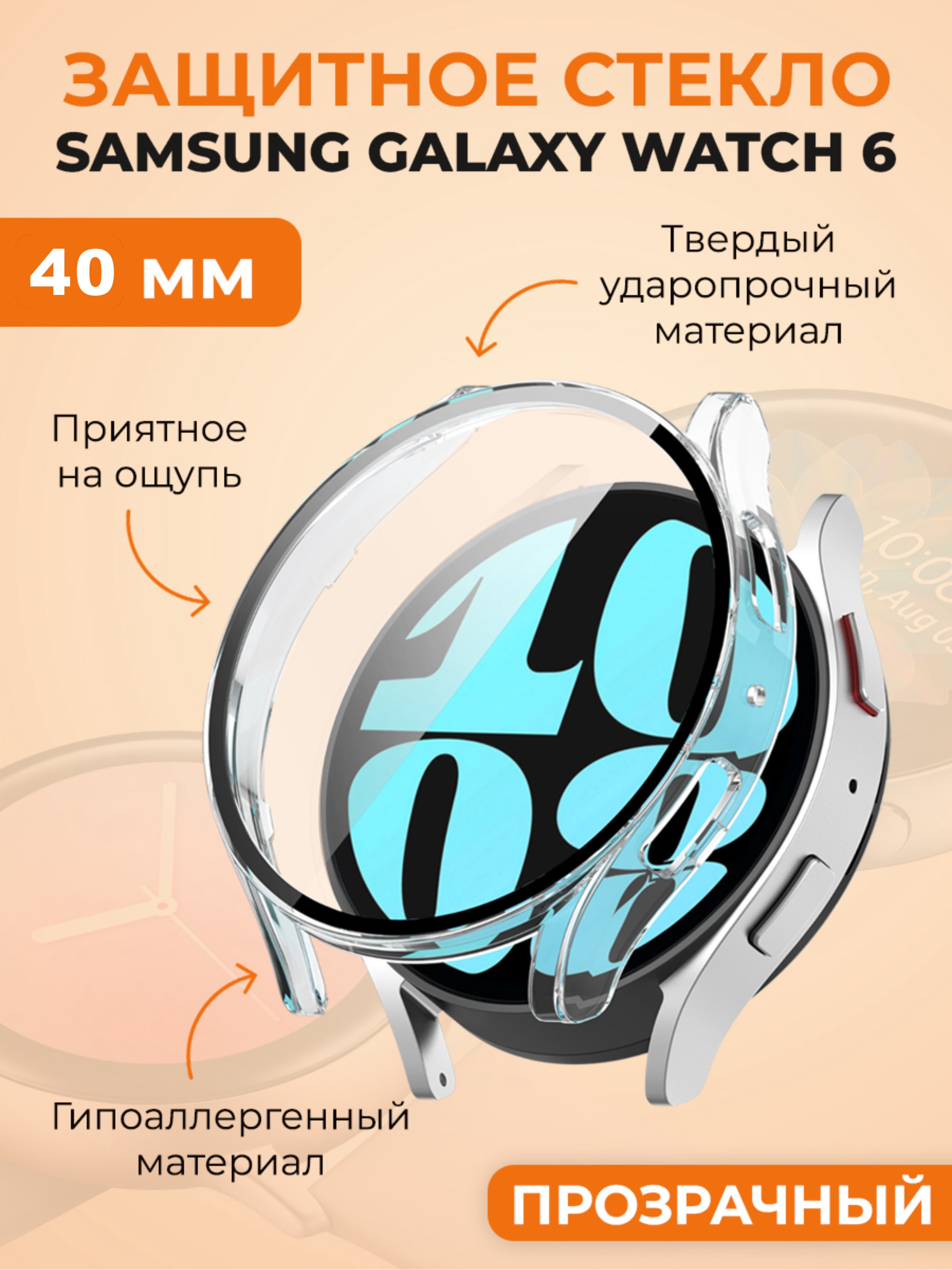 Защитный чехол-стекло для Samsung Galaxy Watch 6, 40 мм, прозрачный