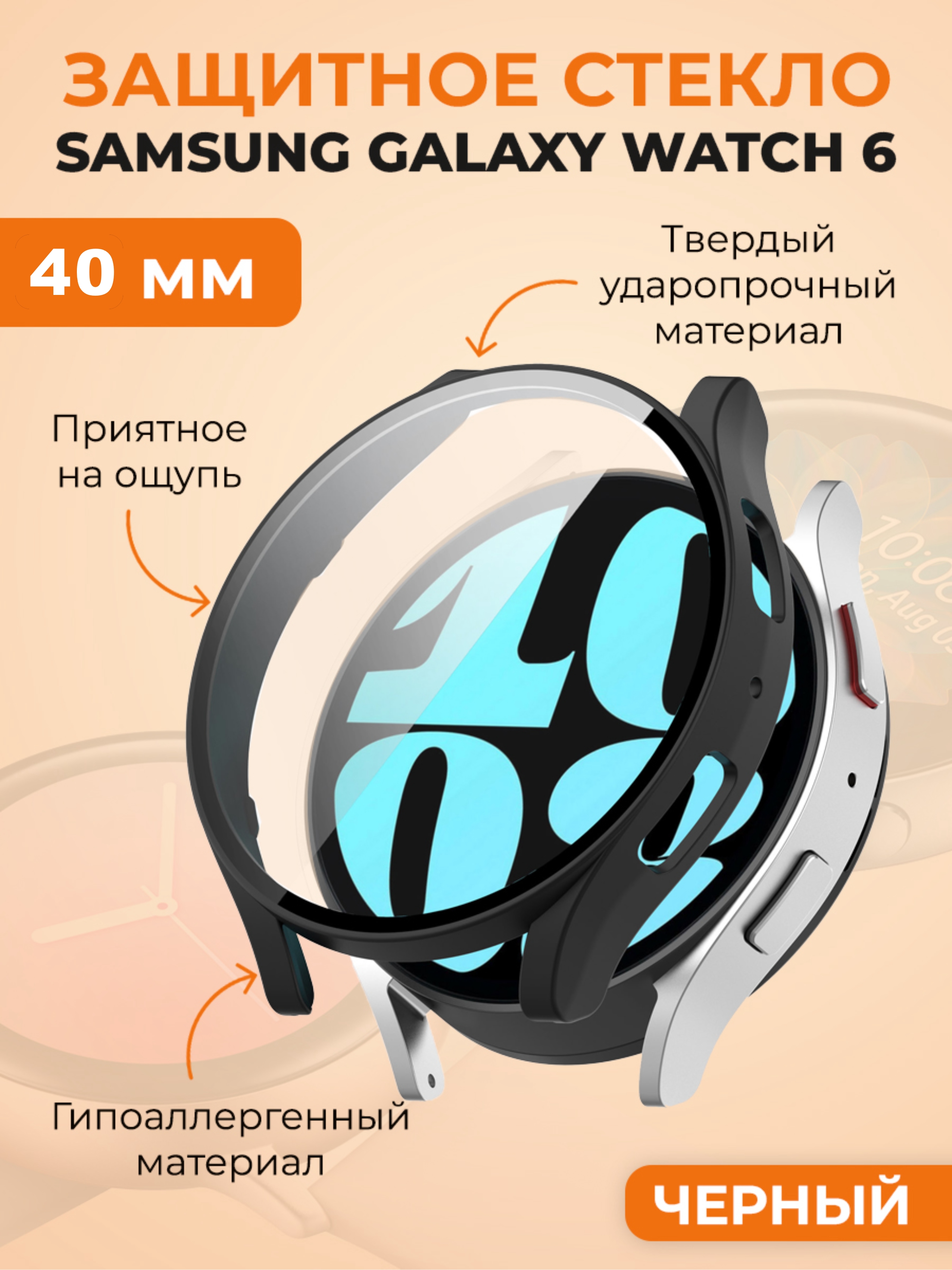 Защитный чехол-стекло для Samsung Galaxy Watch 6, 40 мм, черный