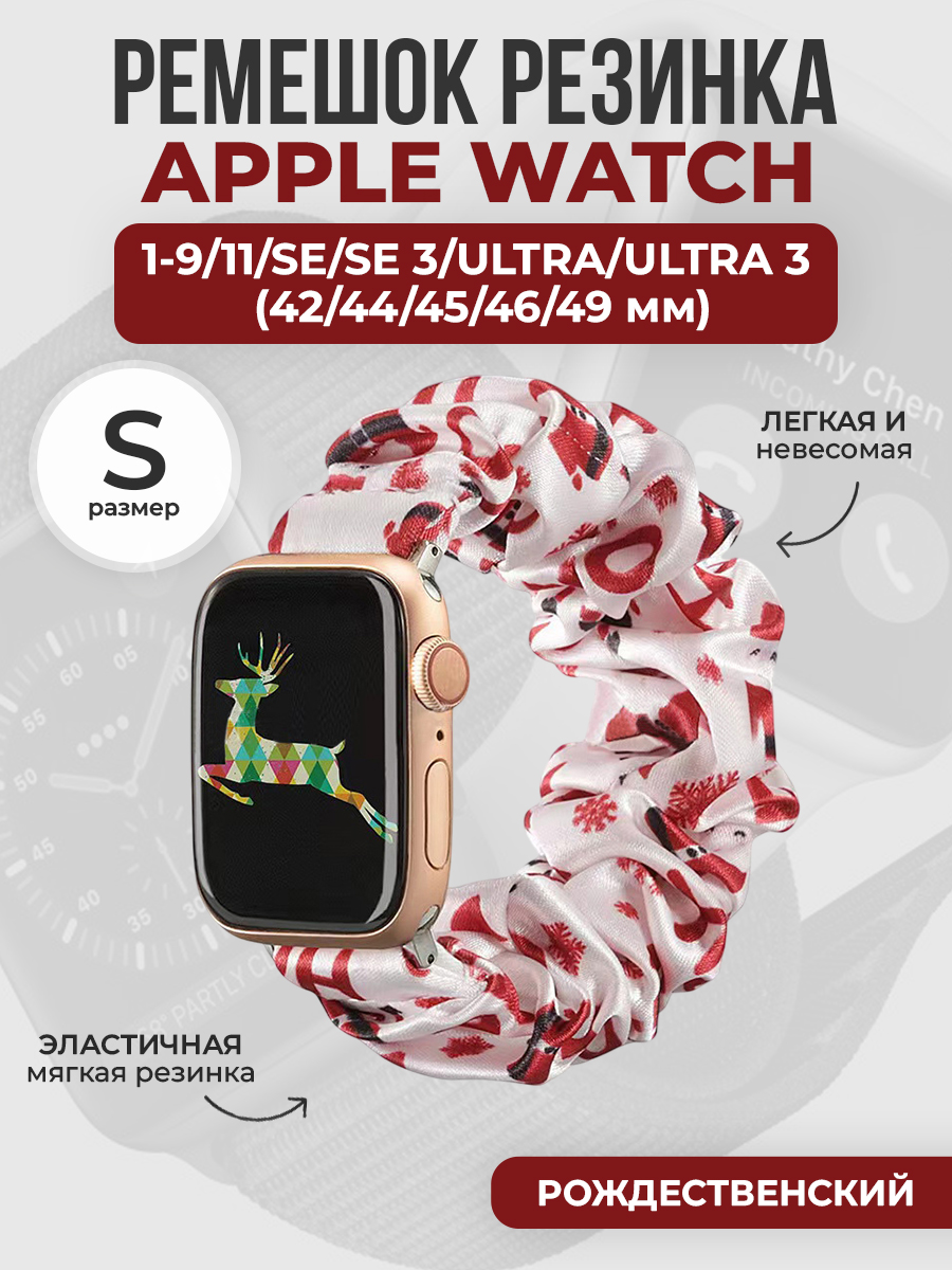 Ремешок резинка для Apple Watch 1-9 / SE / ULTRA (42/44/45/46/49 мм), размер S, рождественский