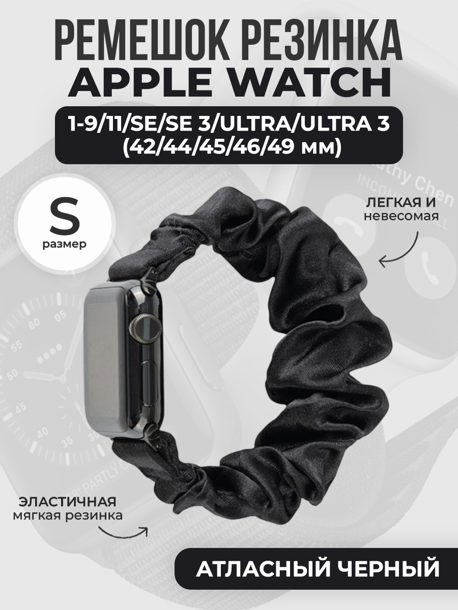 Ремешок резинка для Apple Watch 1-9 / SE / ULTRA (42/44/45/46/49 мм), размер S, атласный черный