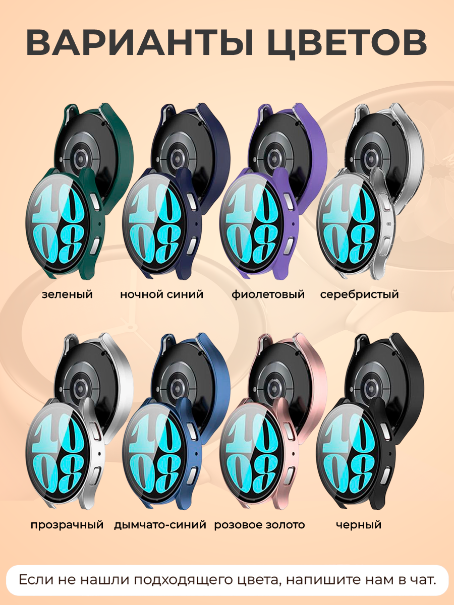 Представляем вашему вниманию защитный чехол-стекло для Samsung Galaxy Watch 6, 40 мм - идеальное сочетание стиля и защиты для ваших умных часов. Подходит для моделей: Samsung Galaxy Watch 6,Samsung Galaxy Watch 6 R930. Этот чехол на часы samsung watch 6 40мм обеспечивает надежную защиту и комфортное использование в любой ситуации. Изготовленный из гипоаллергенного тпу, он подходит для людей с чувствительной кожей и гарантирует безопасное ношение на протяжении длительного времени.