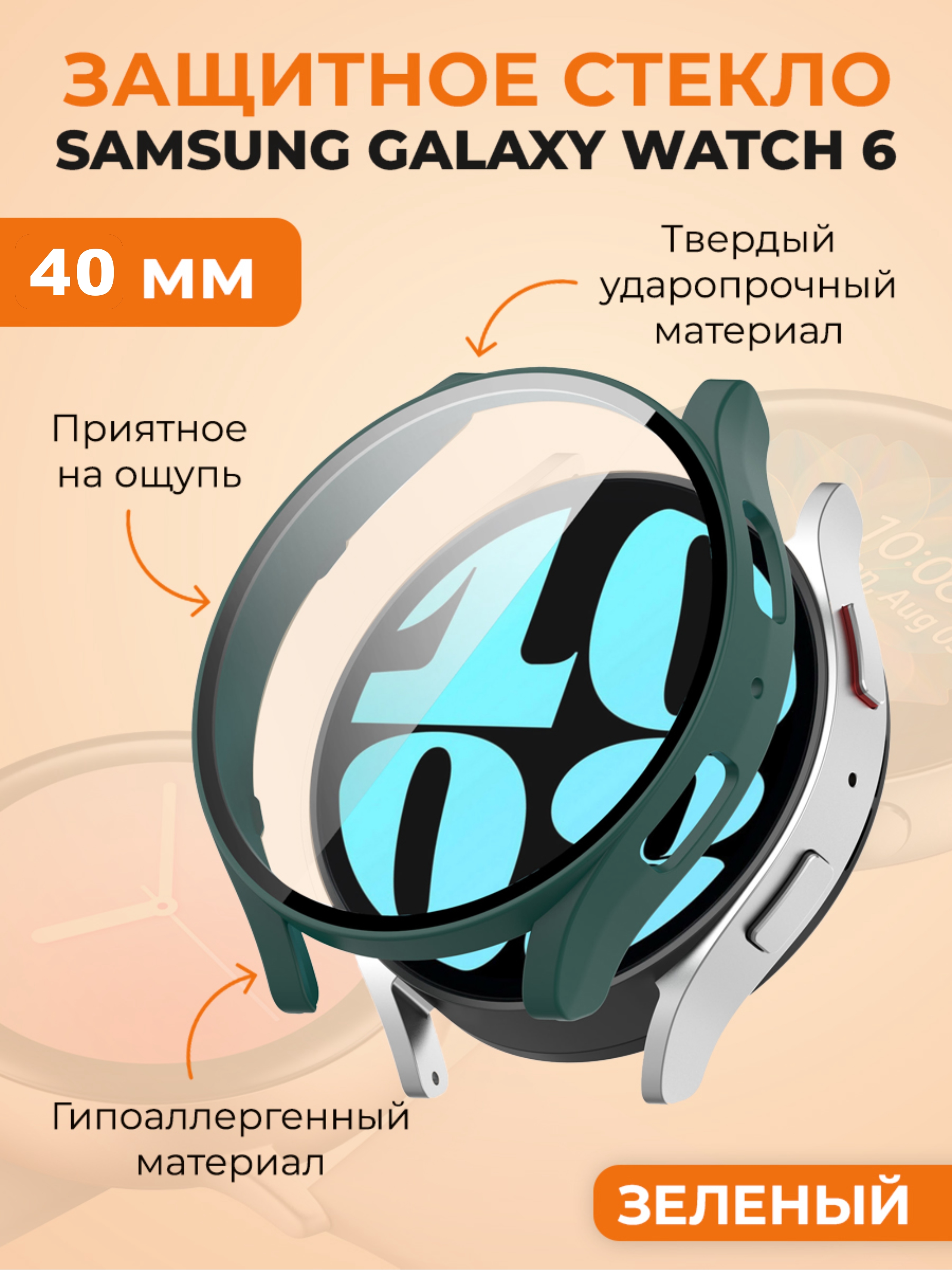 Защитный чехол-стекло для Samsung Galaxy Watch 6, 40 мм, зеленый