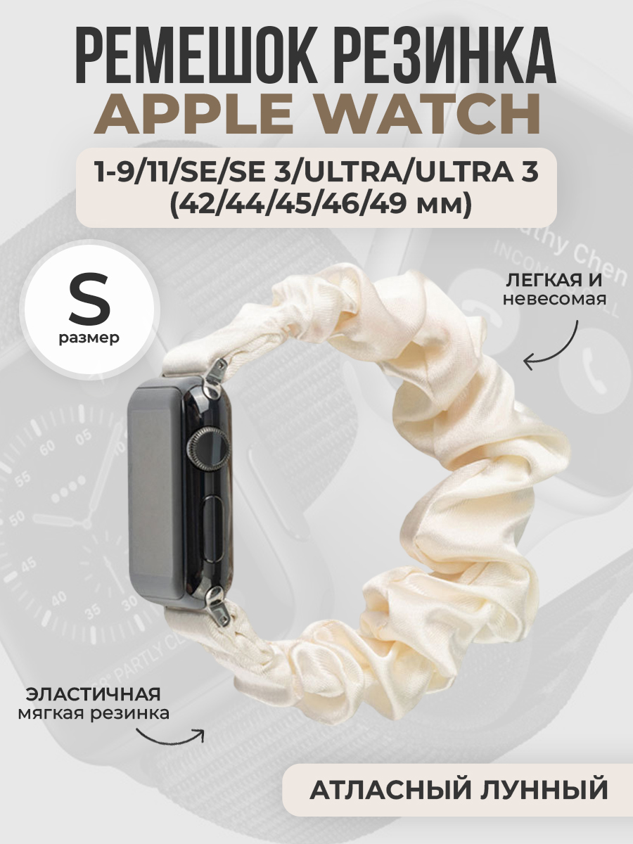 Ремешок резинка для Apple Watch 1-9 / SE / ULTRA (42/44/45/46/49 мм), размер S, атласный лунный