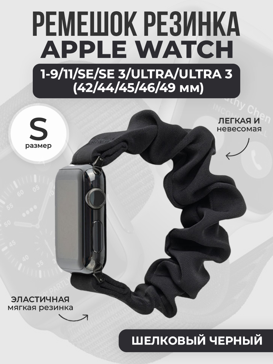 Ремешок резинка для Apple Watch 1-9 / SE / ULTRA (42/44/45/46/49 мм), размер S, шелковый черный