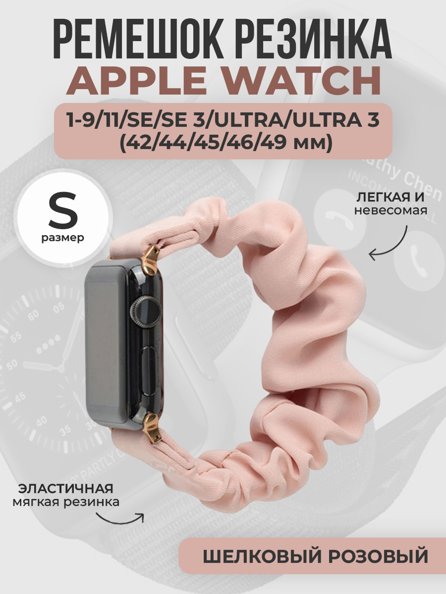Ремешок резинка для Apple Watch 1-9 / SE / ULTRA (42/44/45/46/49 мм), размер S, шелковый розовый