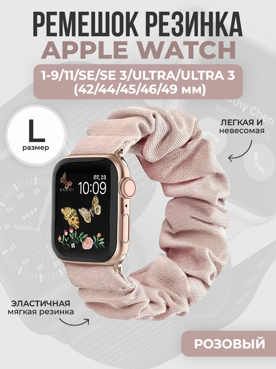 Ремешок резинка для Apple Watch 1-9 / SE / ULTRA (42/44/45/46/49 мм), размер L, розовый
