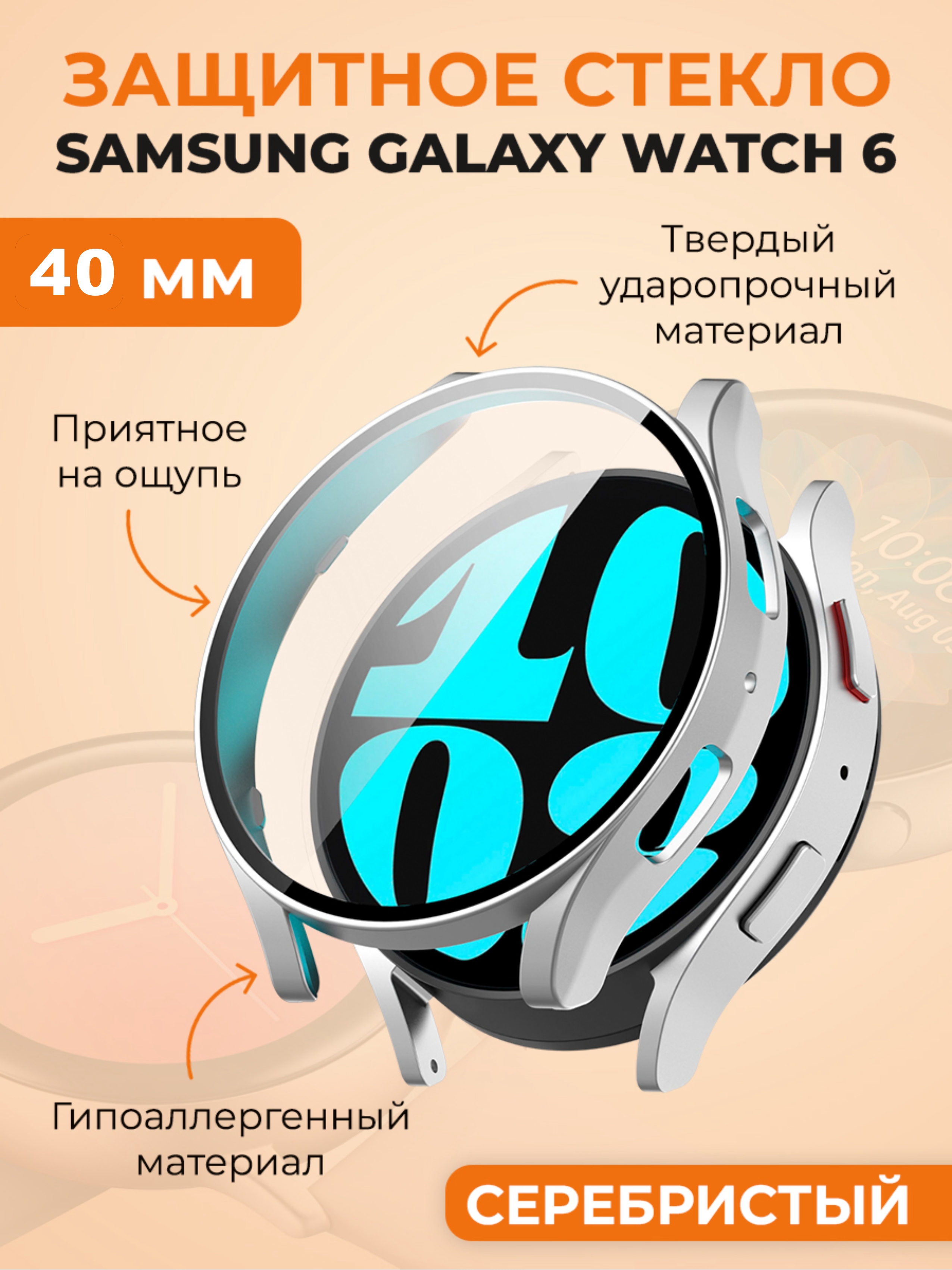Защитный чехол-стекло для Samsung Galaxy Watch 6, 40 мм, серебристый
