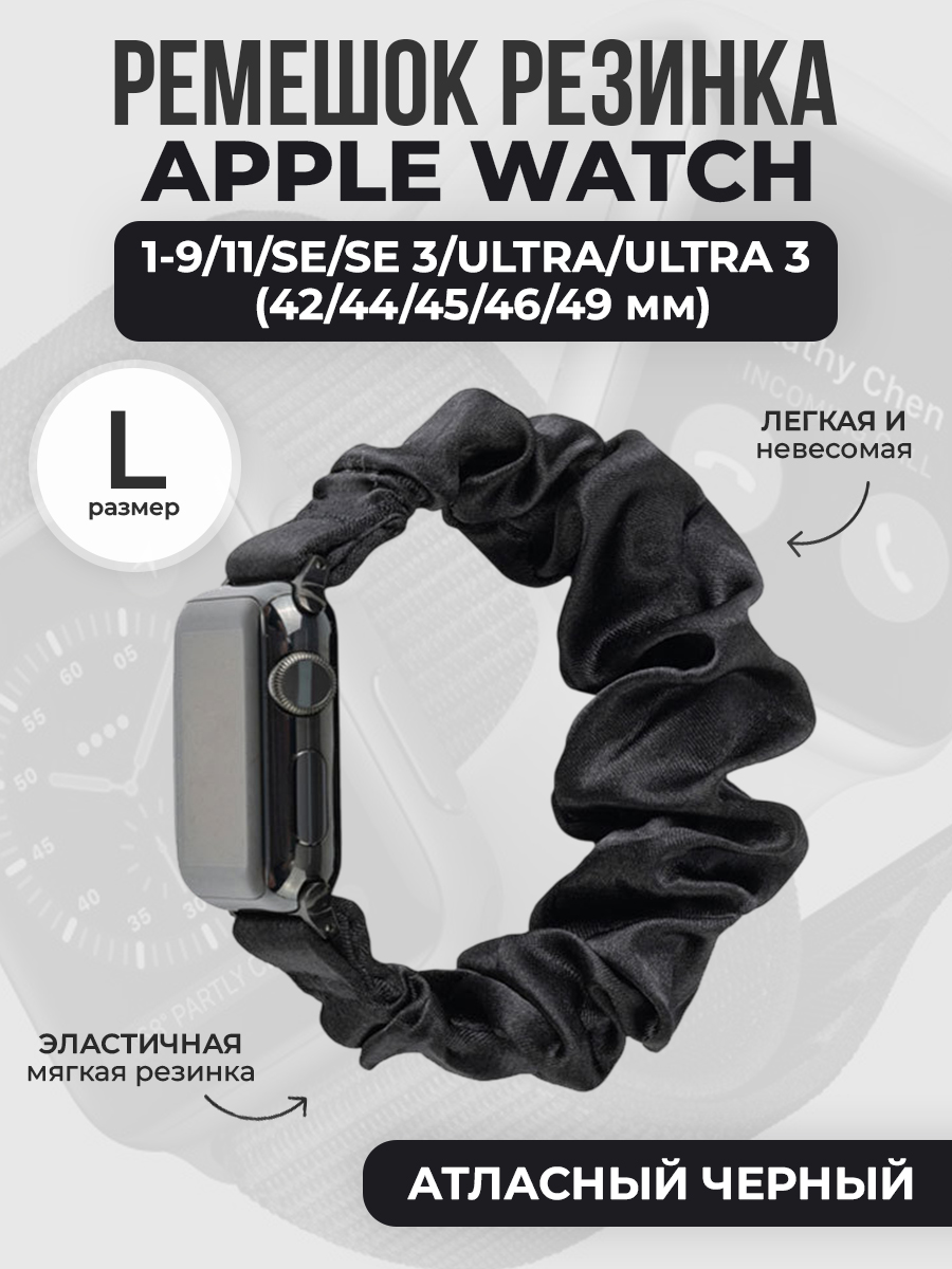 Ремешок резинка для Apple Watch 1-9 / SE / ULTRA (42/44/45/46/49 мм), размер L, атласный черный