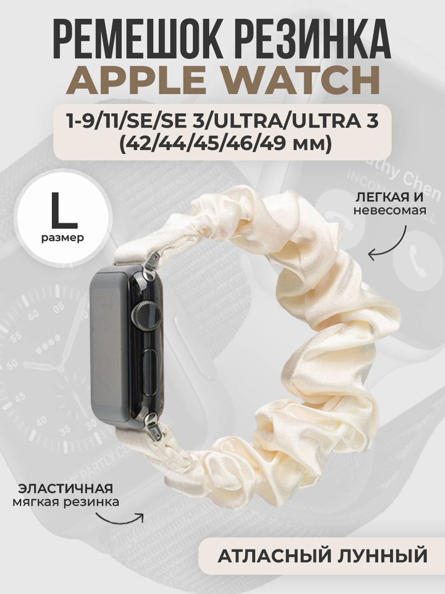 Ремешок резинка для Apple Watch 1-9 / SE / ULTRA (42/44/45/46/49 мм), размер L, атласный лунный