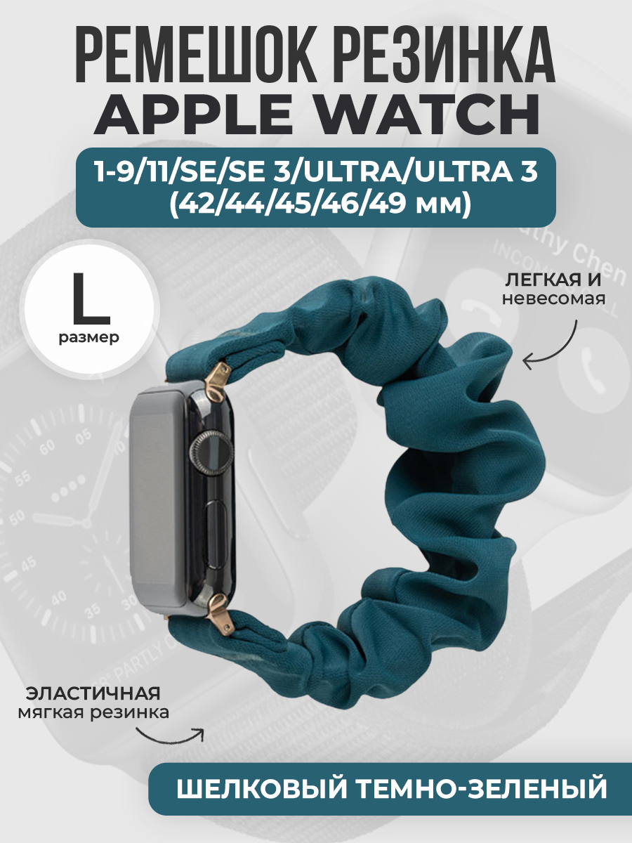 Ремешок резинка для Apple Watch 1-9 / SE / ULTRA (42/44/45/46/49 мм), размер L, шелковый темно-зеленый