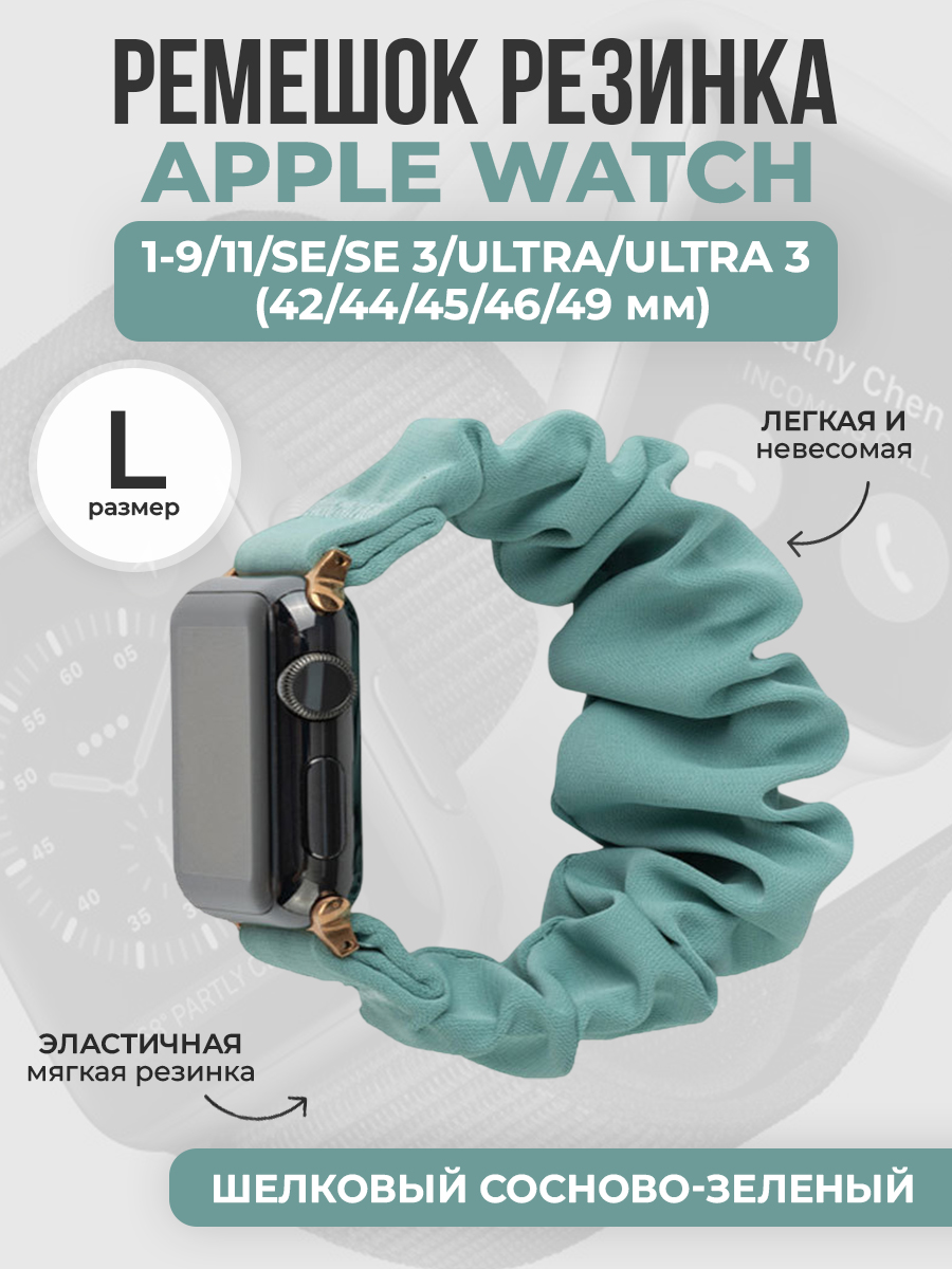 Ремешок резинка для Apple Watch 1-9 / SE / ULTRA (42/44/45/46/49 мм), размер L, шелковый сосново-зеленый