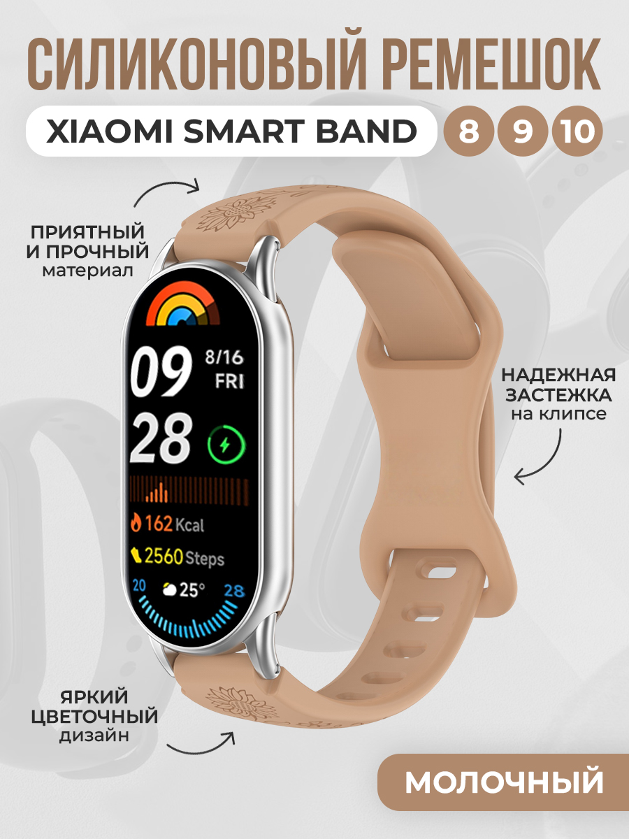 Силиконовый ремешок с рисунком для Xiaomi Smart Band 8/9/10, молочный