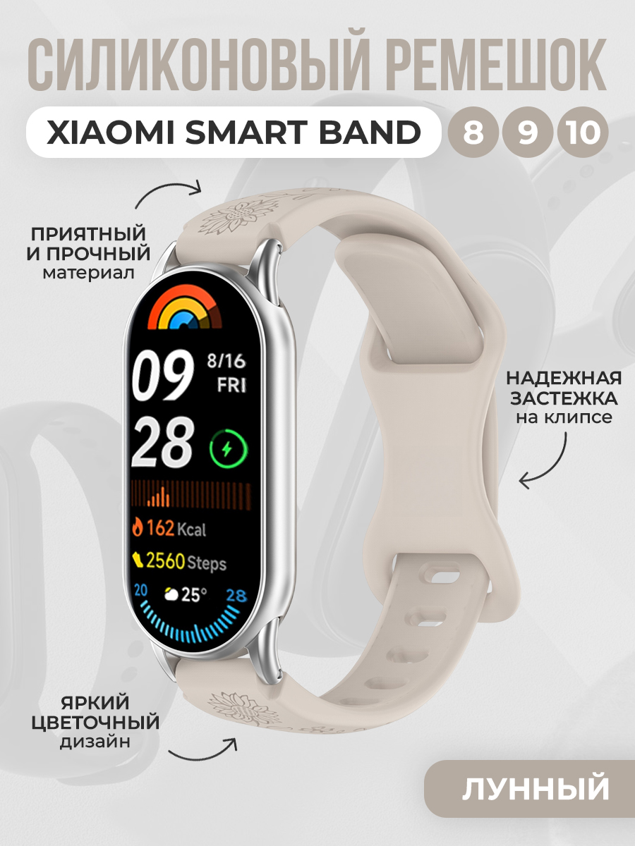 Силиконовый ремешок с рисунком для Xiaomi Smart Band 8/9/10, лунный