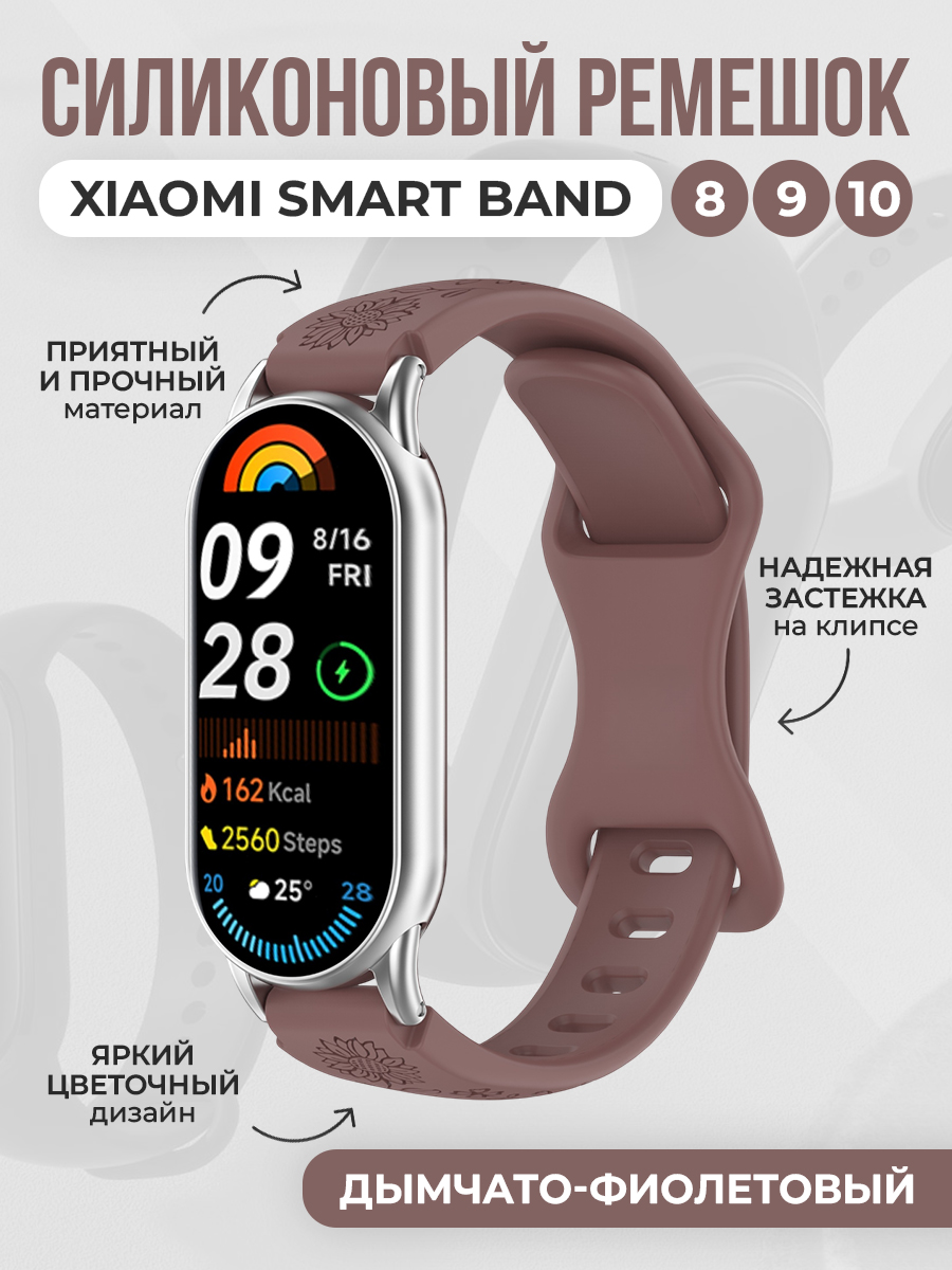 Силиконовый ремешок с рисунком для Xiaomi Smart Band 8/9/10, дымчато-фиолетовый