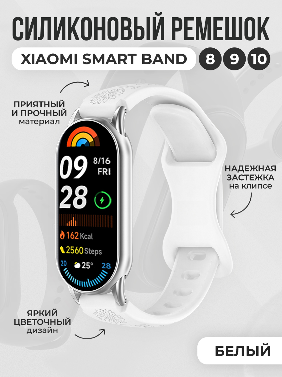 Силиконовый ремешок с рисунком для Xiaomi Smart Band 8/9/10, белый
