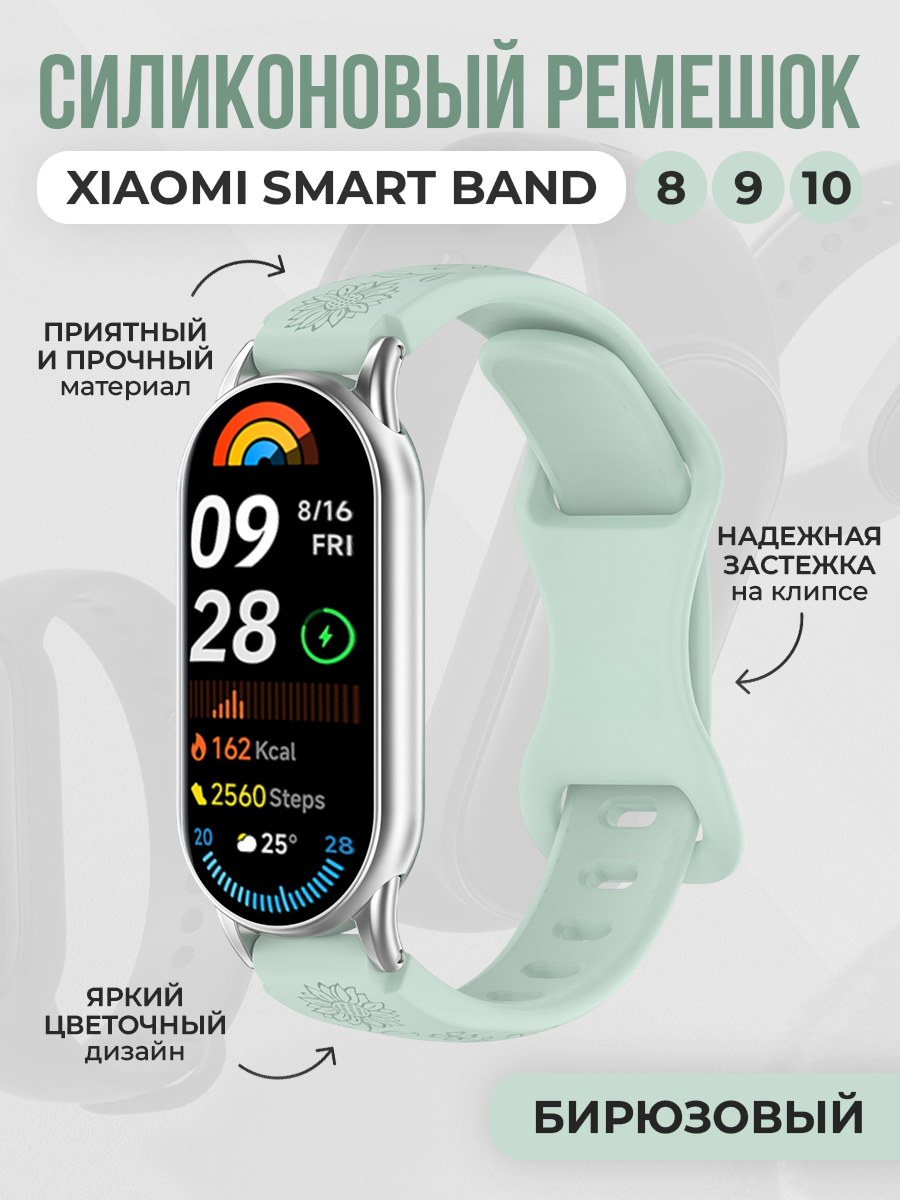Силиконовый ремешок с рисунком для Xiaomi Smart Band 8/9/10, бирюзовый