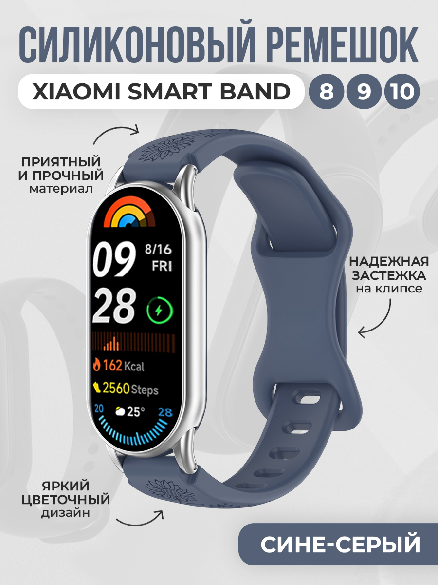 Силиконовый ремешок с рисунком для Xiaomi Smart Band 8/9/10, сине-серый