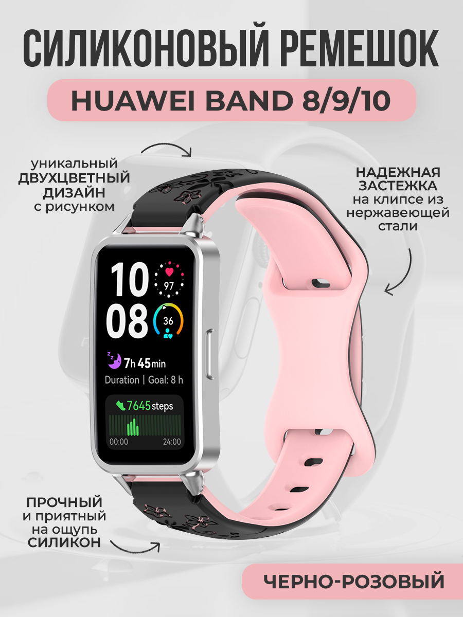 Двухцветный силиконовый ремешок с рисунком для Huawei Band 8/9/10, черно-розовый