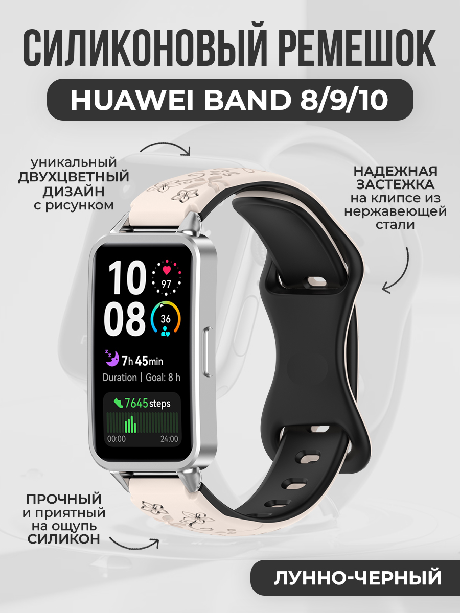 Двухцветный силиконовый ремешок с рисунком для Huawei Band 8/9/10, лунно-черный
