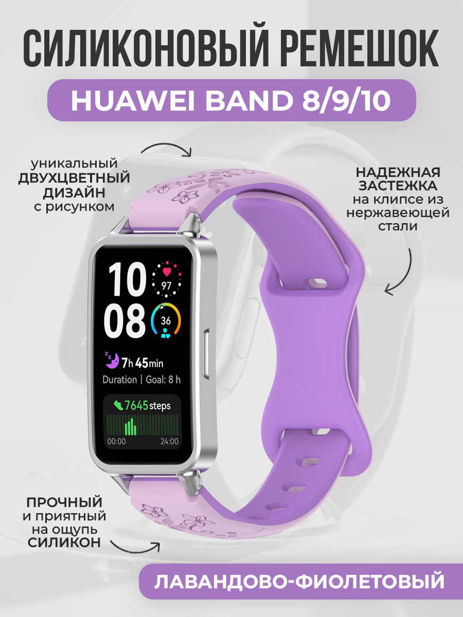 Двухцветный силиконовый ремешок с рисунком для Huawei Band 8/9/10, лавандово-фиолетовый