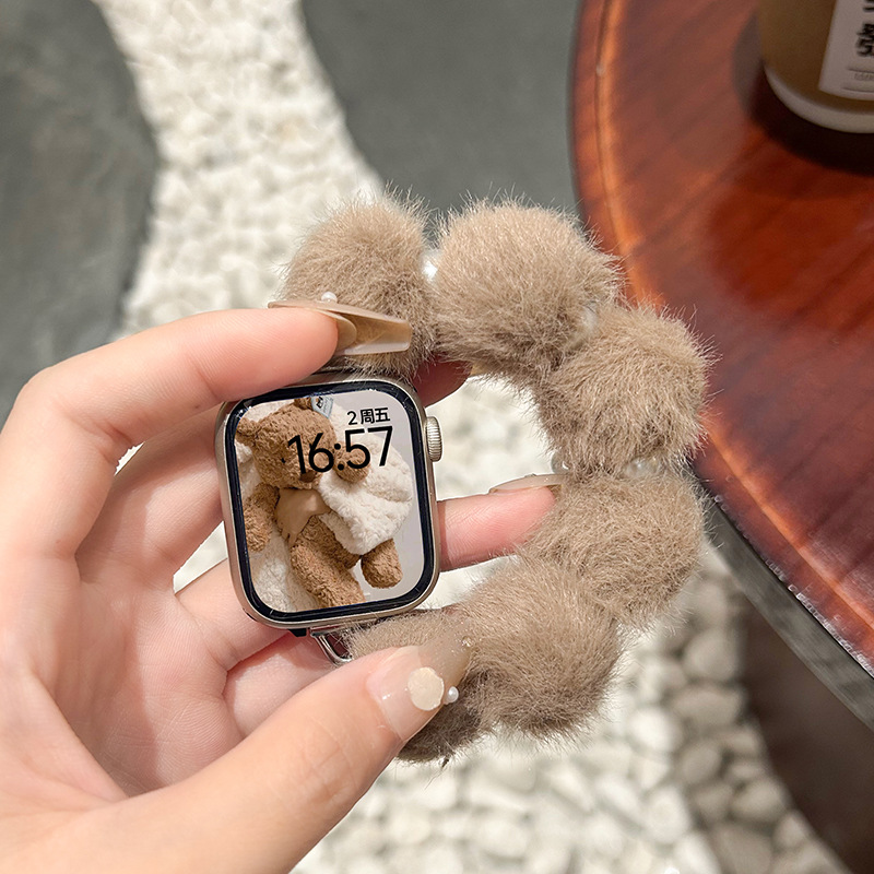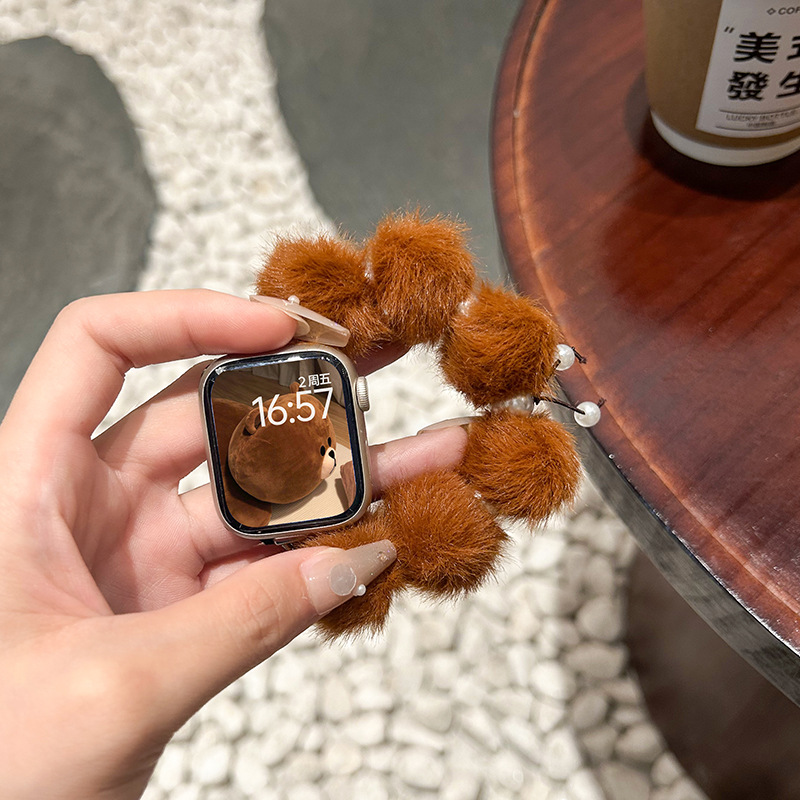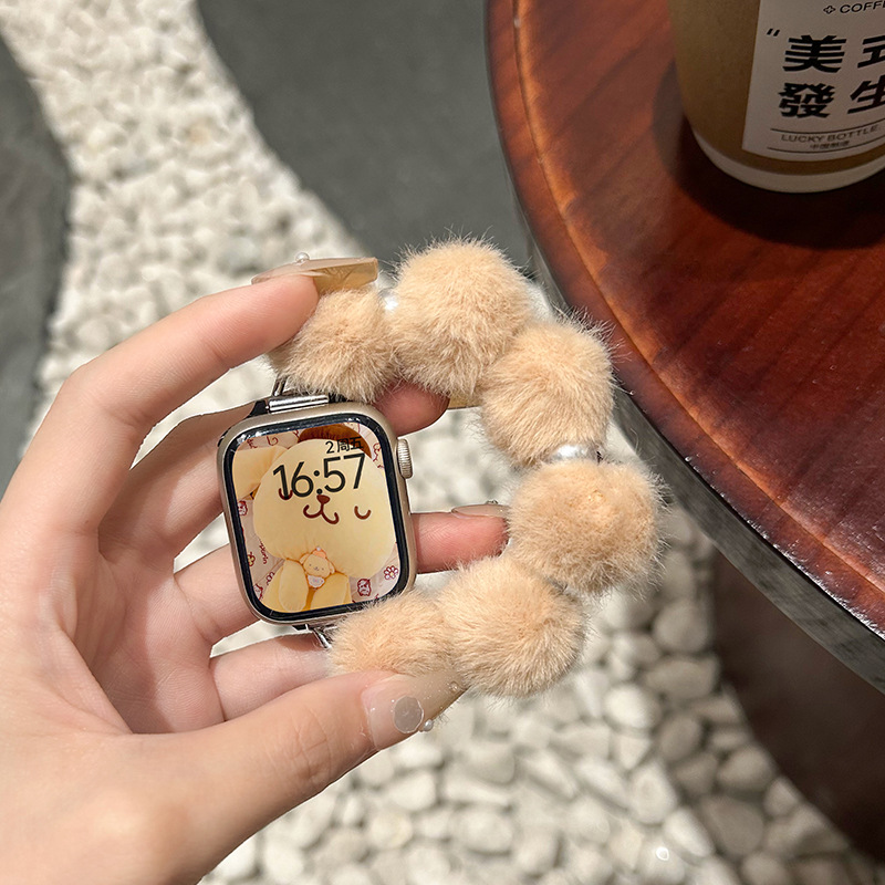 Ремешок с плюшевыми шариками для Apple Watch 1-9 / SE / SE 3 (38/40/41 мм), 11/S10/S11, 42 мм, светло-коричневый