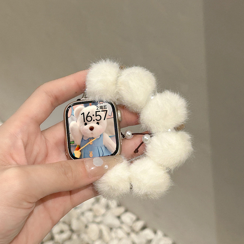 Эластичный ремешок с плюшевыми шариками для Apple Watch 1-9 / SE / SE 3 (38/40/41 мм), 11/S10/S11, 42 мм — идеальный аксессуар для вашего стильного смарт-часа. Этот ремешок стал настоящим трендом для людей, ценящих удобство и оригинальный дизайн. Изготовленный из высококачественного эластичного материала, он обеспечивает надежную фиксацию на запястье, что делает его комфортным для повседневной носки. Плюшевые шарики добавляют в этот аксессуар нотку игривости и индивидуальности. Их мягкая текстура приятно ощущается на коже, а разнообразие расцветок позволяет выбрать подходящий вариант под любой стиль. Благодаря эластичному дизайну, ремешок легко настраивается под любые размеры запястья, что делает его универсальным. Ремешок отлично подходит для активного образа жизни: будь то занятия спортом, прогулка или работа в офисе. Он защищает ваш Эппл воч от повреждений и при этом сохраняет его стильный внешний вид. Легкий и прочный, это идеальное решение для тех, кто хочет выделиться из толпы.