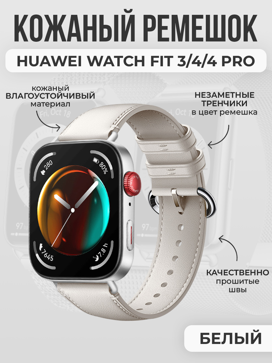Кожаный ремешок для Huawei Watch Fit 3/4/4 Pro, белый