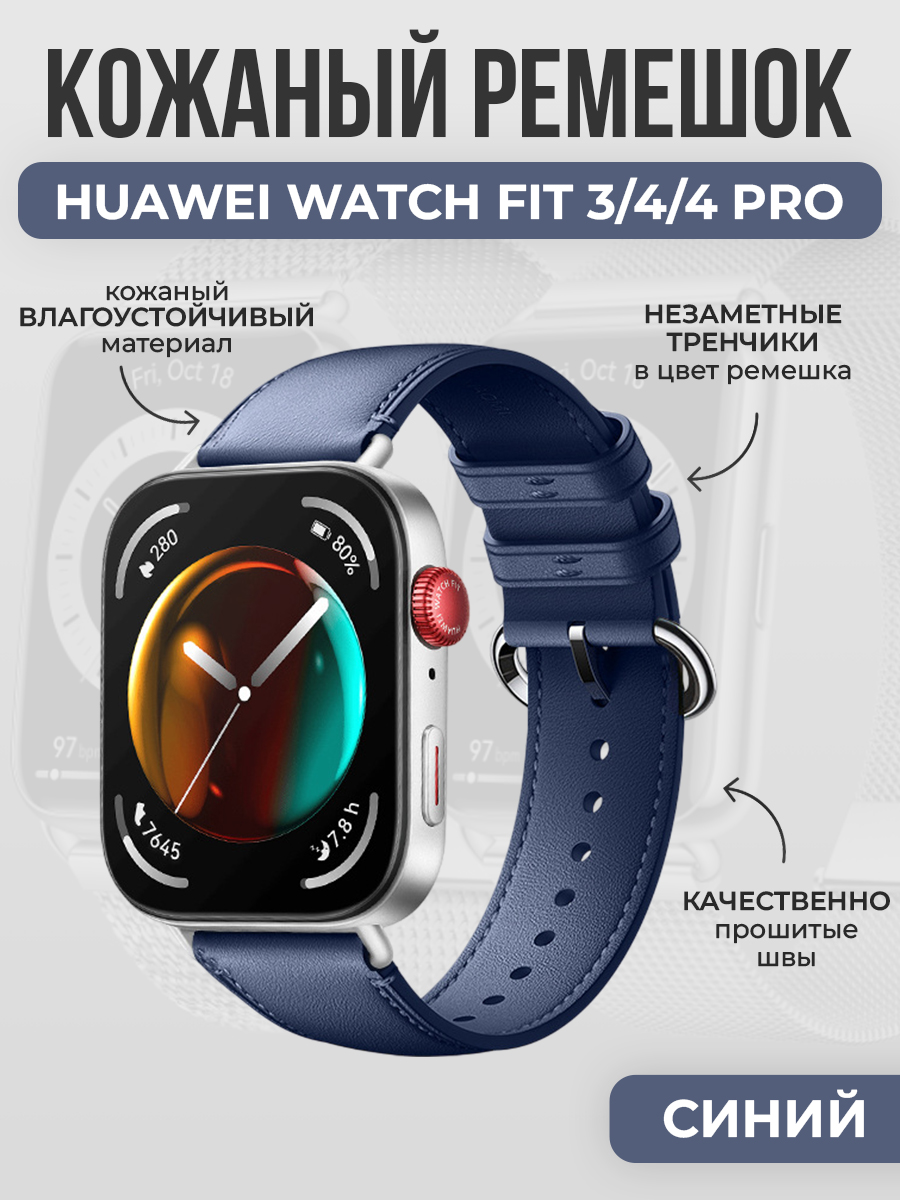 Кожаный ремешок для Huawei Watch Fit 3/4/4 Pro, синий