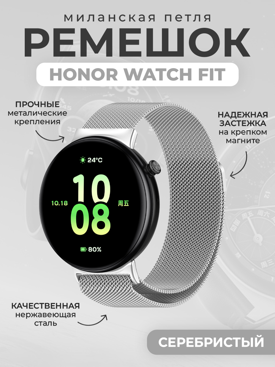Ремешок миланская петля для Honor Watch Fit, серебристый