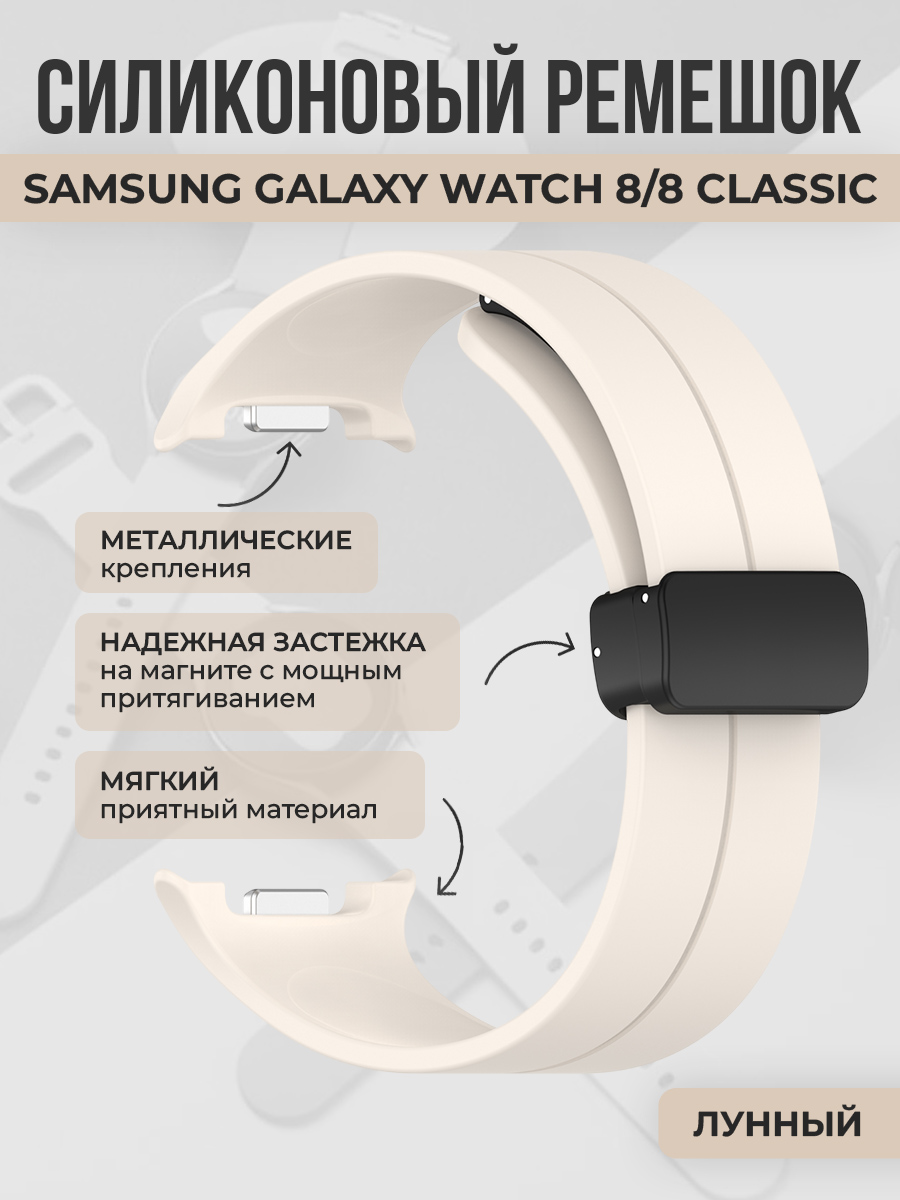Силиконовый ремешок с магнитной застежкой для Samsung Galaxy Watch 8/8 Classic, лунный