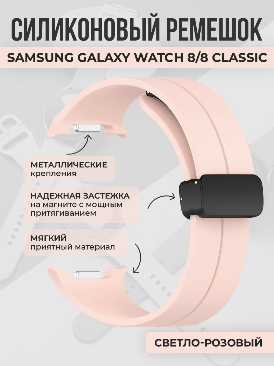 Силиконовый ремешок с магнитной застежкой для Samsung Galaxy Watch 8/8 Classic, светло-розовый