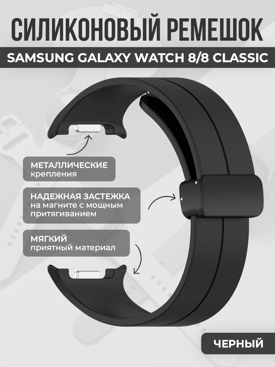 Силиконовый ремешок с магнитной застежкой для Samsung Galaxy Watch 8/8 Classic, черный