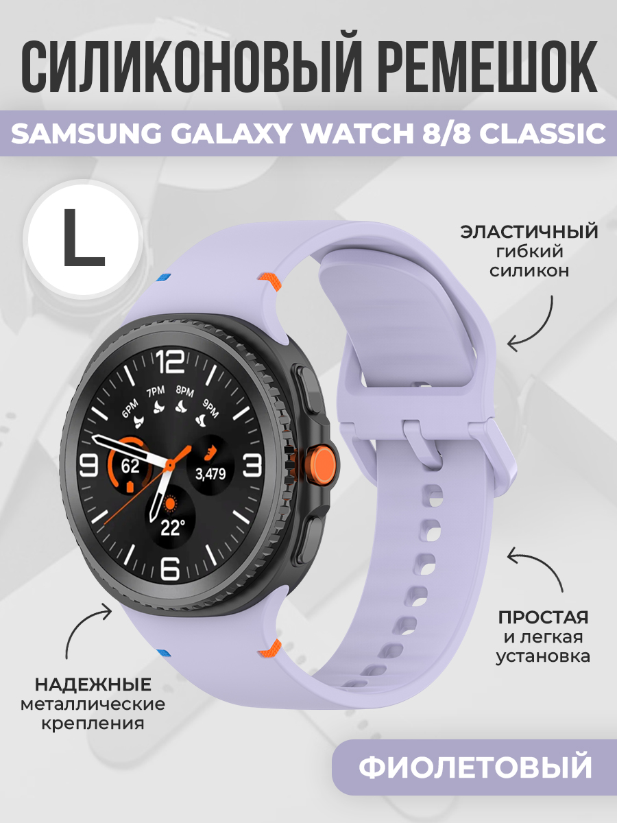 Силиконовый ремешок с цветной застежкой для Samsung Galaxy Watch 8/8 Classic, размер L, фиолетовый