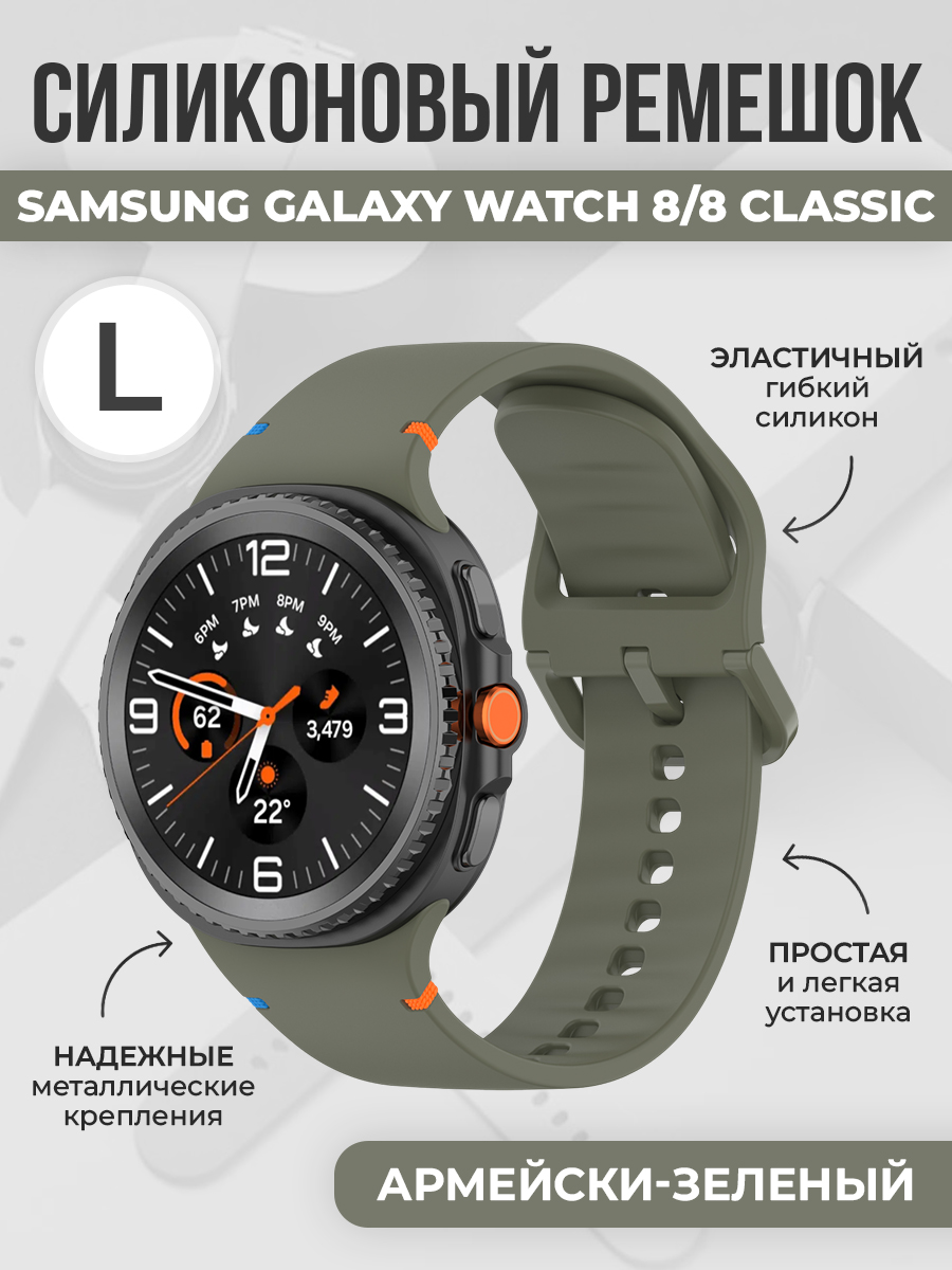 Силиконовый ремешок с цветной застежкой для Samsung Galaxy Watch 8/8 Classic, размер L, армейски-зеленый