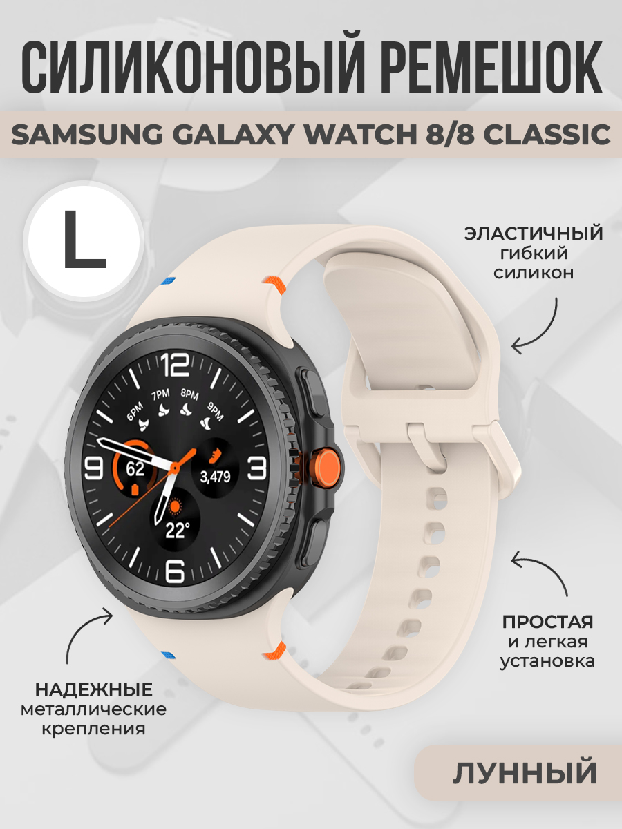 Силиконовый ремешок с цветной застежкой для Samsung Galaxy Watch 8/8 Classic, размер L, лунный