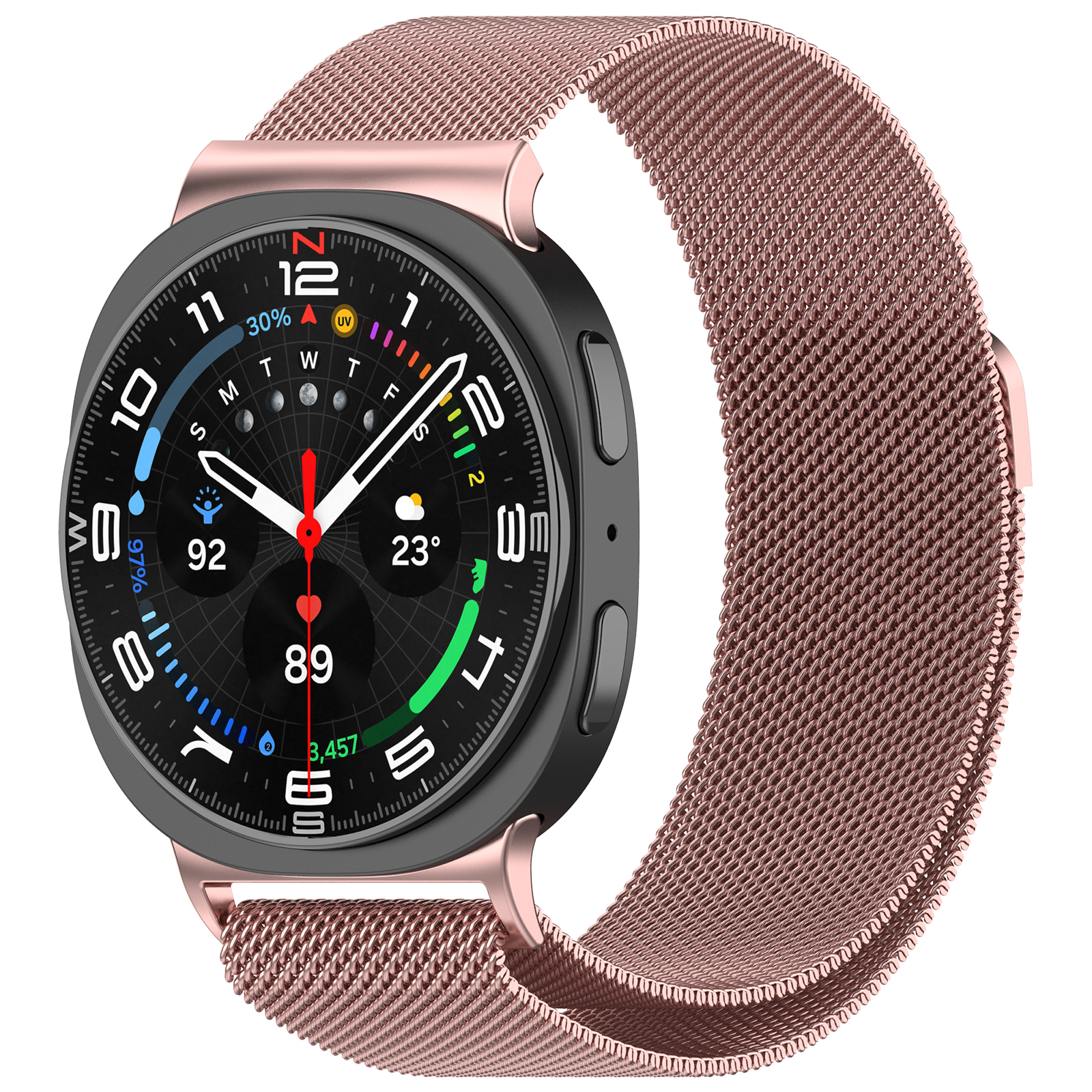 Магнитный ремешок миланская петля для Samsung Galaxy Watch 8 и Galaxy Watch 8 Classic — это идеальное дополнение к вашему смарт-часам. Изготовленный из высококачественной нержавеющей стали, этот ремешок сочетает в себе стиль и функциональность. Особая магнетическая застежка обеспечивает надежную фиксацию, что позволяет носить часы с комфортом в любое время суток. Уникальный дизайн и элегантная структура ремешка подчеркивают индивидуальность владельца и дополняют любой наряд. Ремешок миланская петля подходит для обеих моделей — Самсунг гелекси вотч 8 и гелекси воч 8 классик. Это позволяет легко заменить старый ремешок на новый, не теряя времени и денег на покупки отдельных аксессуаров. Плавные линии и пятиуровневая регулировка длины ремешка гарантируют комфорт при носке, позволяя вам выбрать оптимальное сочетание удобства и стиля.