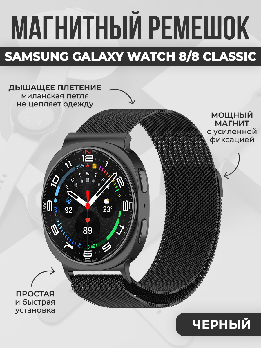 Магнитный ремешок миланская петля для Samsung Galaxy Watch 8/8 Classic, черный