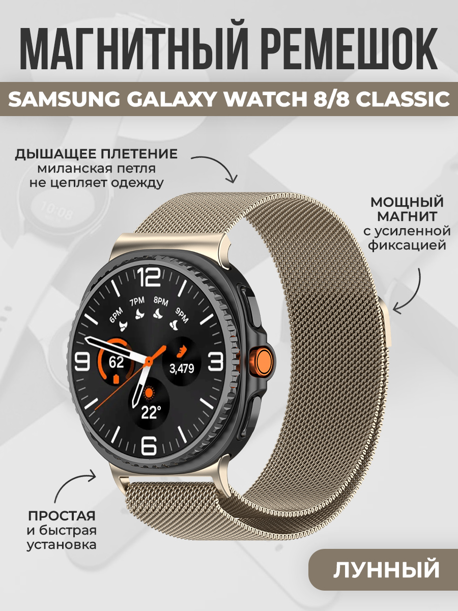 Магнитный ремешок миланская петля для Samsung Galaxy Watch 8/8 Classic, лунный
