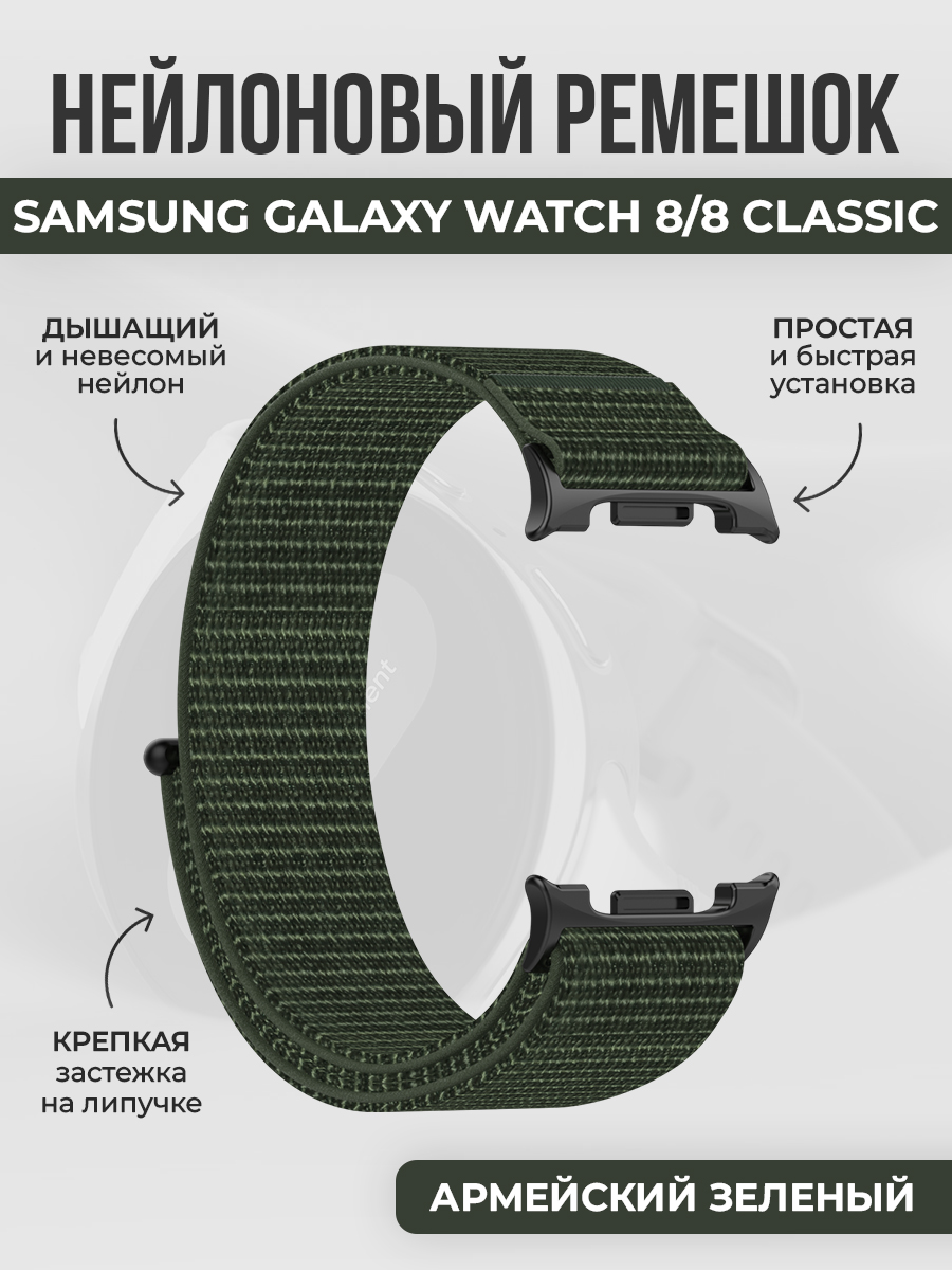 Нейлоновый ремешок на липучке для Samsung Galaxy Watch 8/8 Classic, армейский зеленый