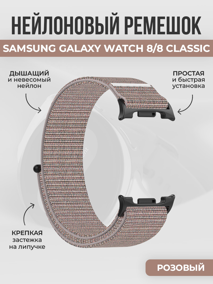 Нейлоновый ремешок на липучке для Samsung Galaxy Watch 8/8 Classic, розовый