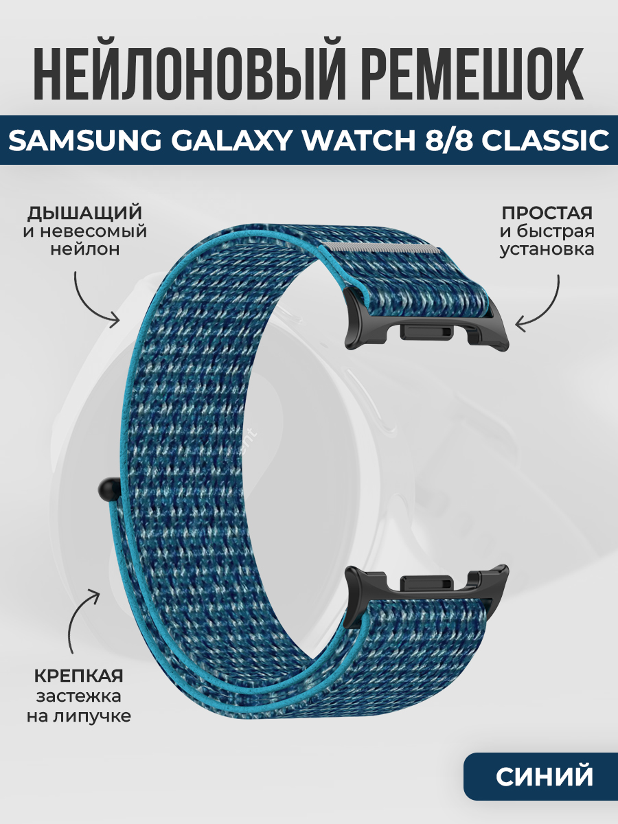 Нейлоновый ремешок на липучке для Samsung Galaxy Watch 8/8 Classic, синий