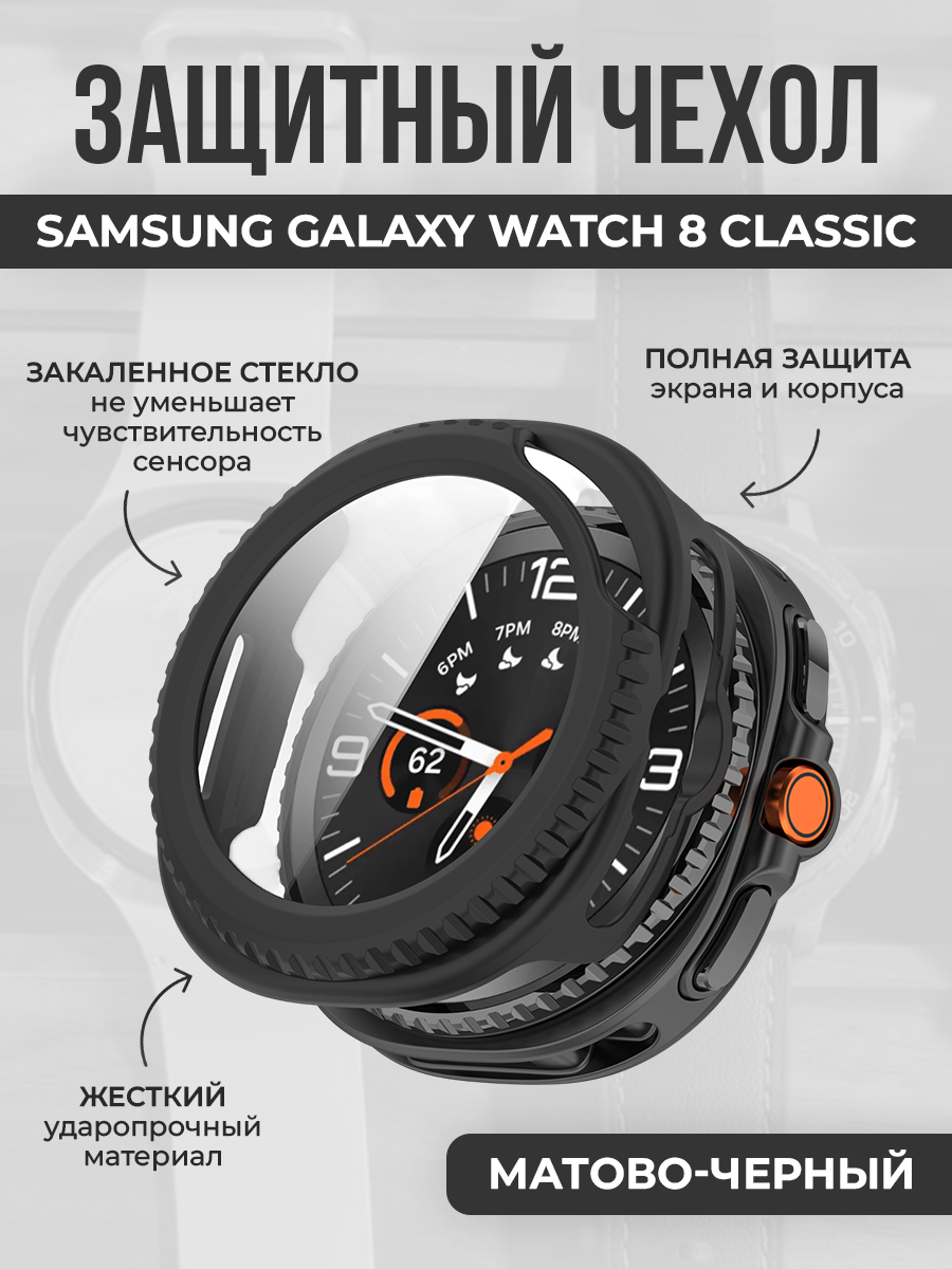Жесткий защитный чехол со стеклом для Samsung Galaxy Watch 8 Classic, матово-черный