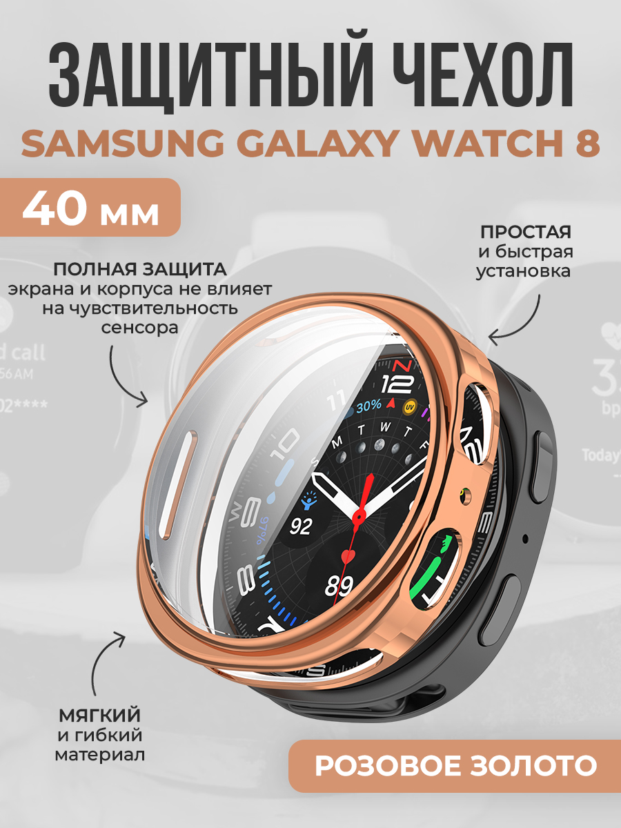 Мягкий защитный бампер для Samsung Galaxy Watch 8, 40 мм, розовое золото
