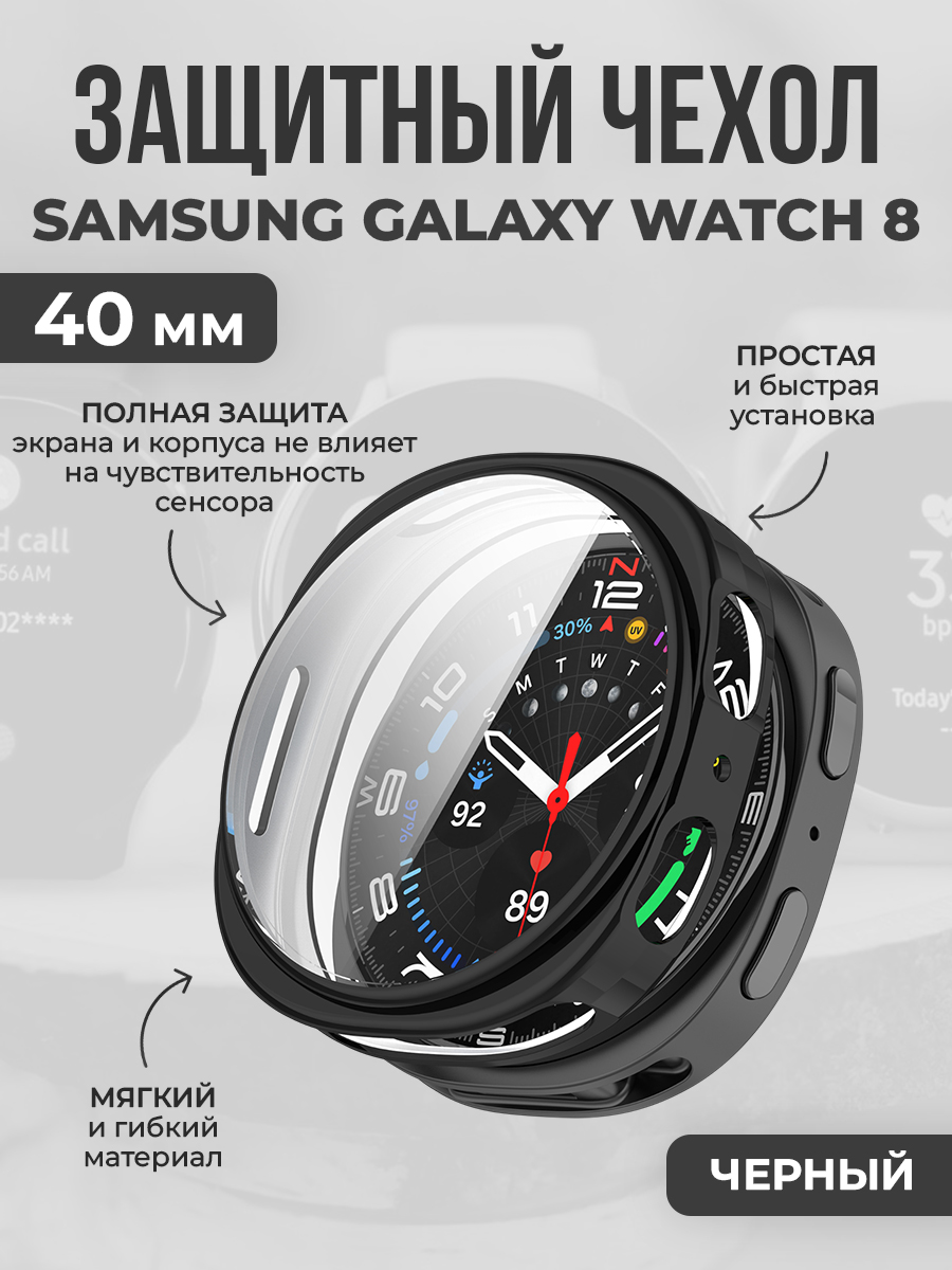 Мягкий защитный бампер для Samsung Galaxy Watch 8, 40 мм, черный