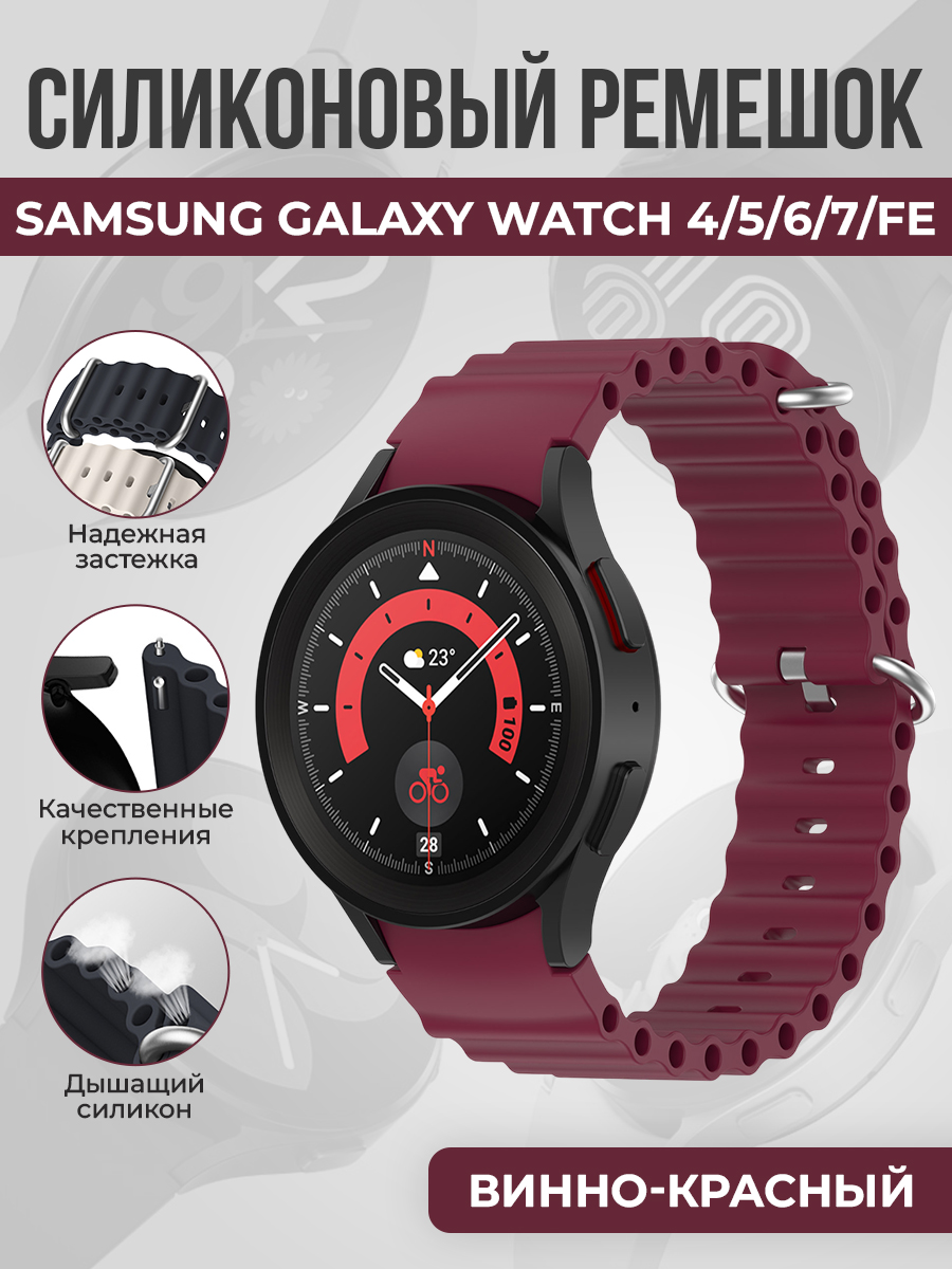 Силиконовый ремешок океанская цепь для Samsung Galaxy Watch 4/5/6/7/FE, винно-красный