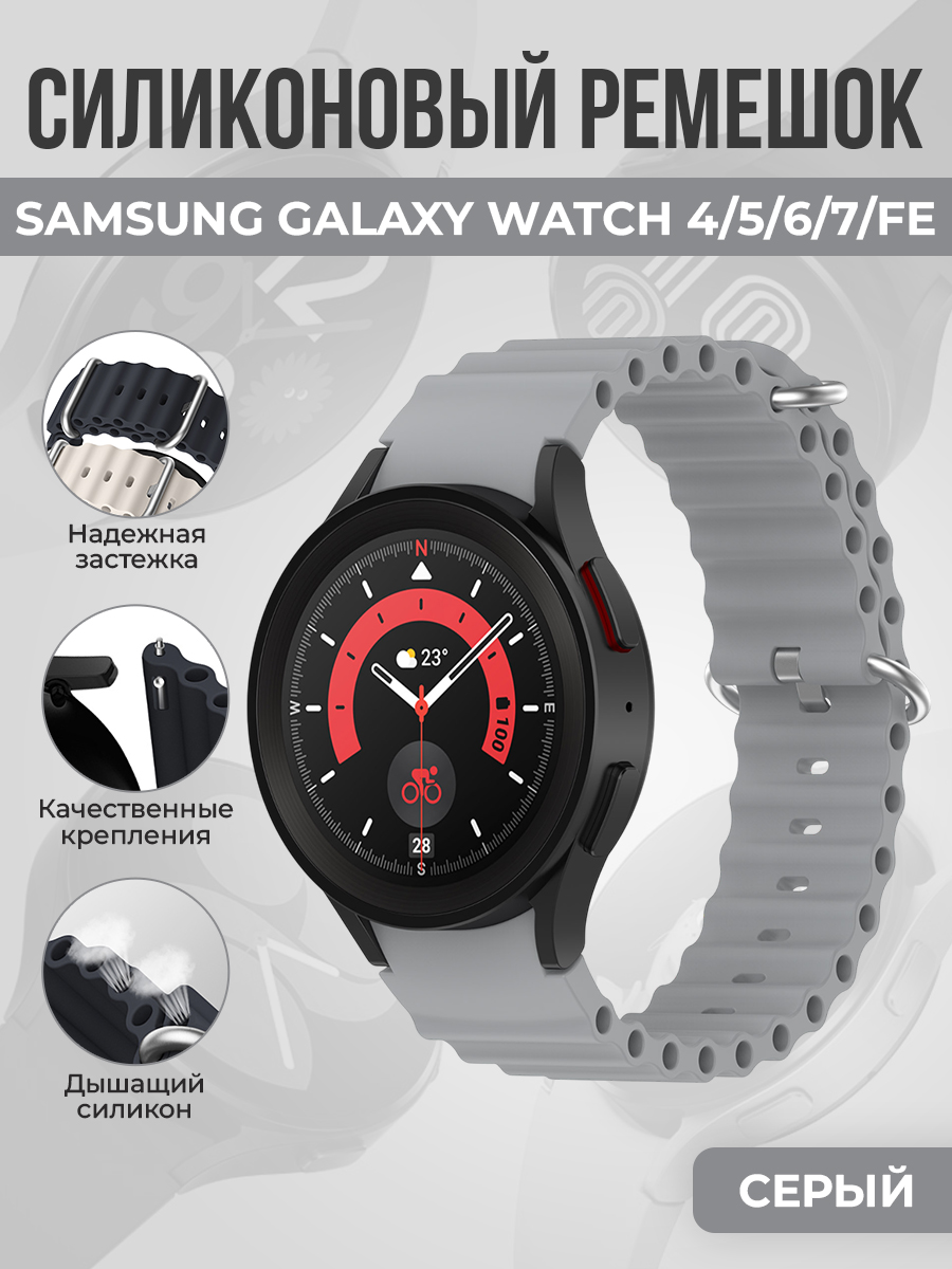 Силиконовый ремешок океанская цепь для Samsung Galaxy Watch 4/5/6/7/FE, серый