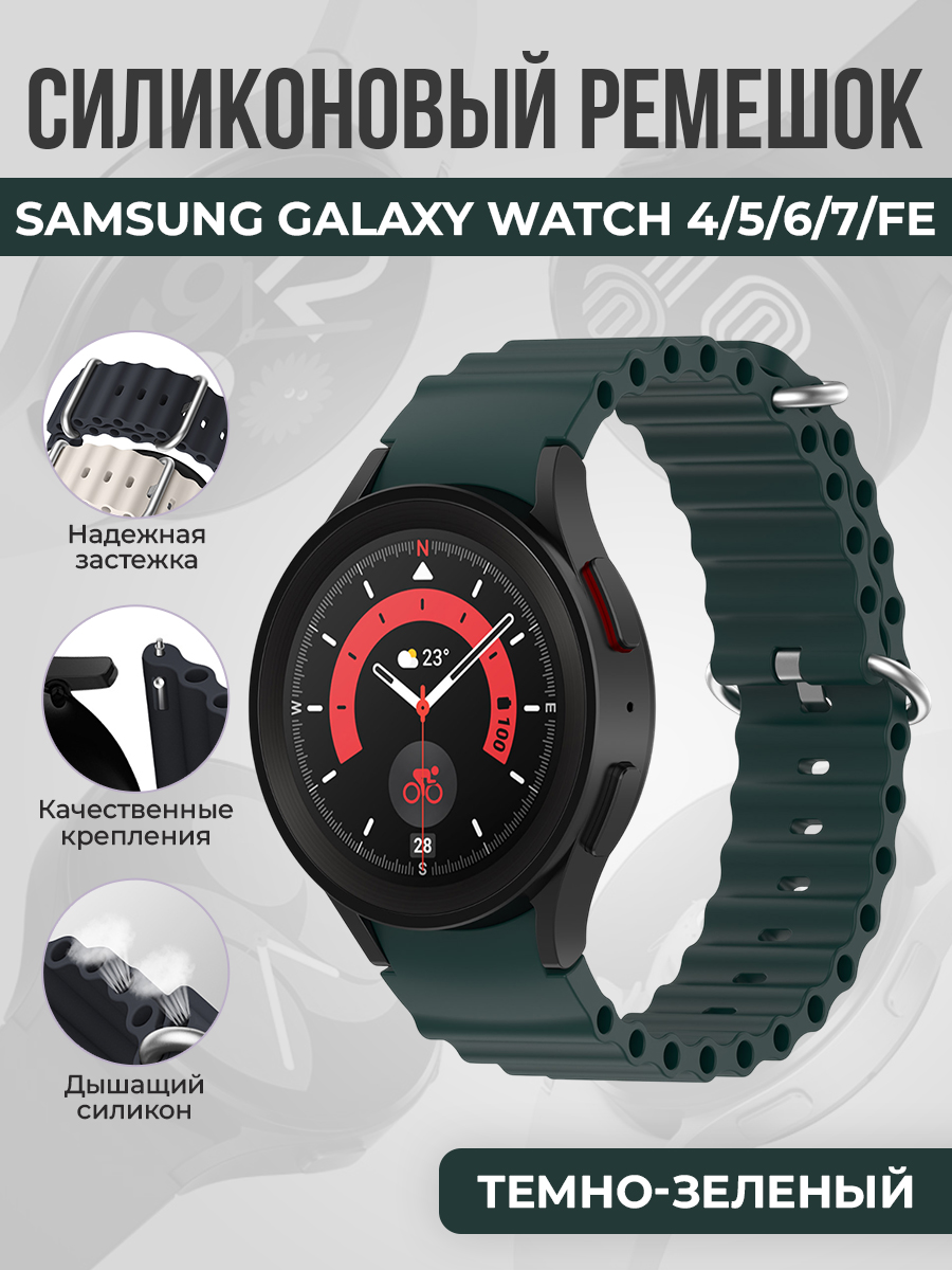 Силиконовый ремешок океанская цепь для Samsung Galaxy Watch 4/5/6/7/FE, темно-зеленый