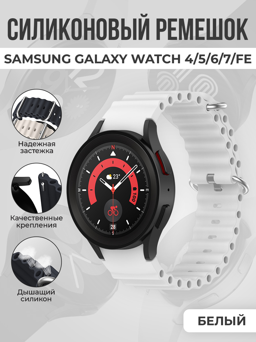 Силиконовый ремешок океанская цепь для Samsung Galaxy Watch 4/5/6/7/FE, белый